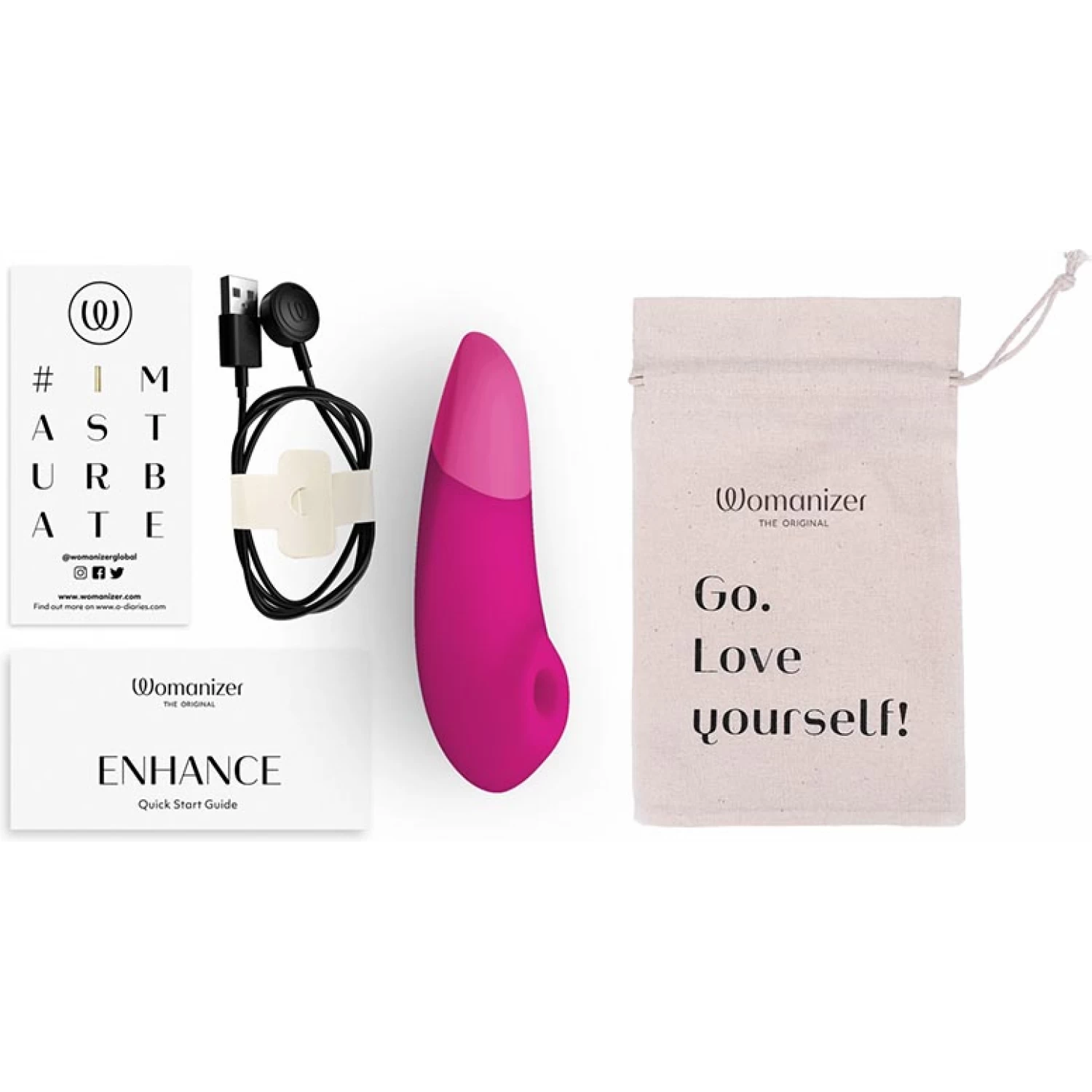 Этот вибратор имеет более широкую интегрированную головку, которая стимулирует большую площадь поверхности, усиливая ощущения. Корпус покрыт мягким шелковистым силиконом, не содержит токсичных веществ и безопасен для кожи человека. Womanizer Enhance полностью водонепроницаем, поэтому подходит для игр в ванной или душе.