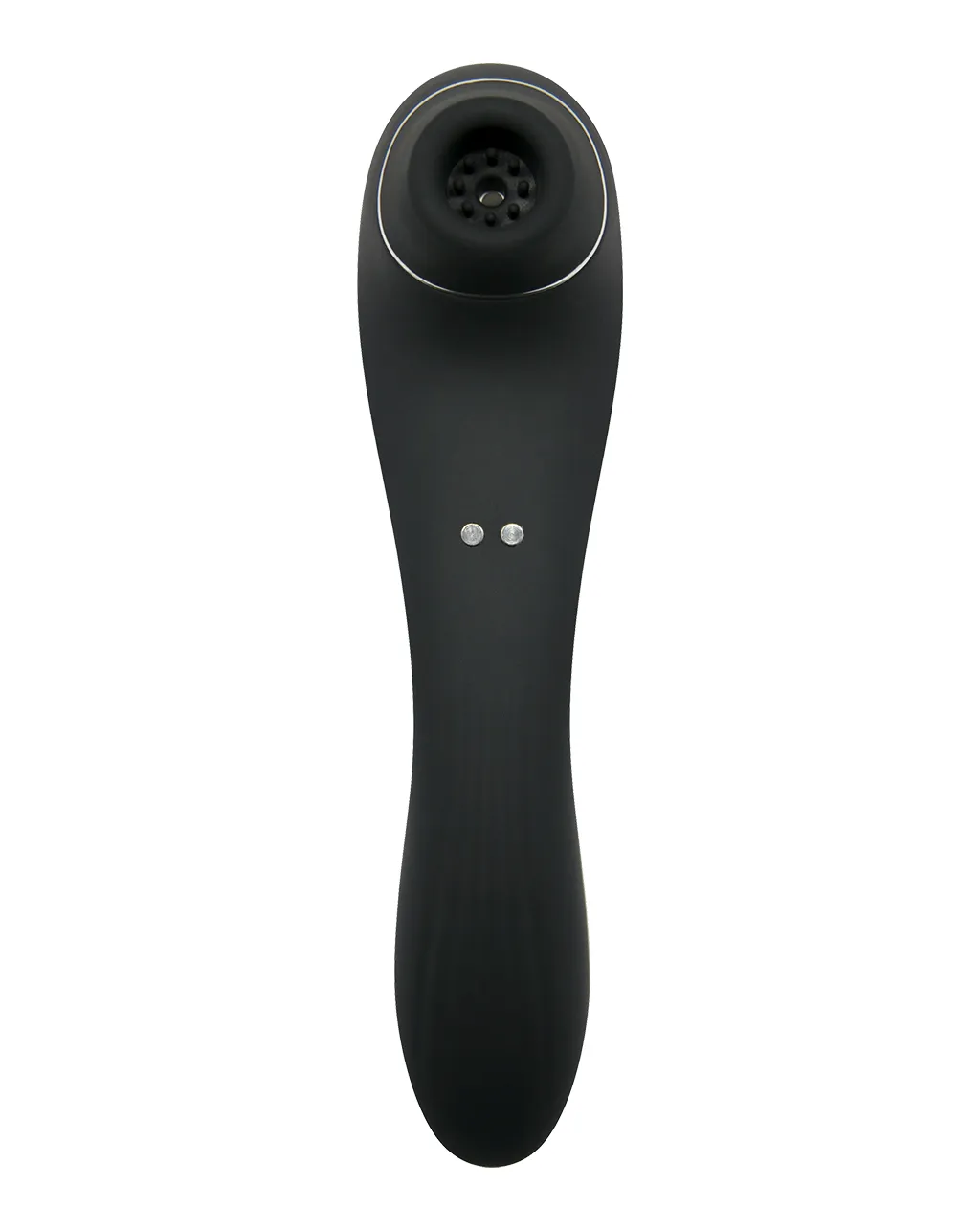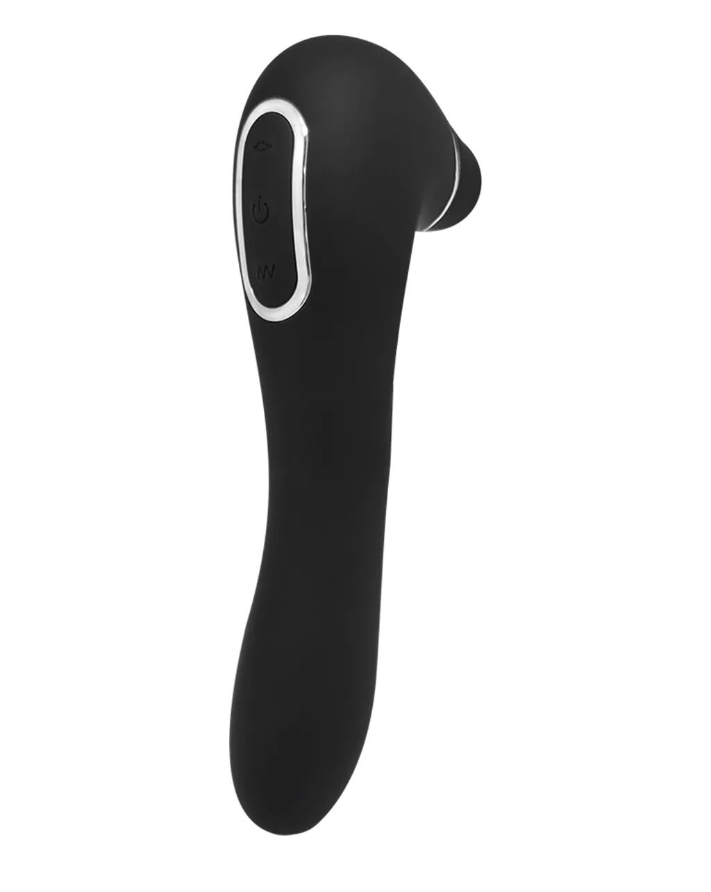 Стимулятор клитора Smoooch Black черного цвета с двойной функцией. Сделан из силикона и ABS, удобен в использовании. Длина — 18,6 см, диаметр — 4,5 см, вес — 230 г. Два мотора, 10 режимов вибрации и всасывания. Подходит для клитора и точки G. Водонепроницаемость IPX7 для игр в воде. Заряжается через USB. Уход прост: промыть водой с мылом.