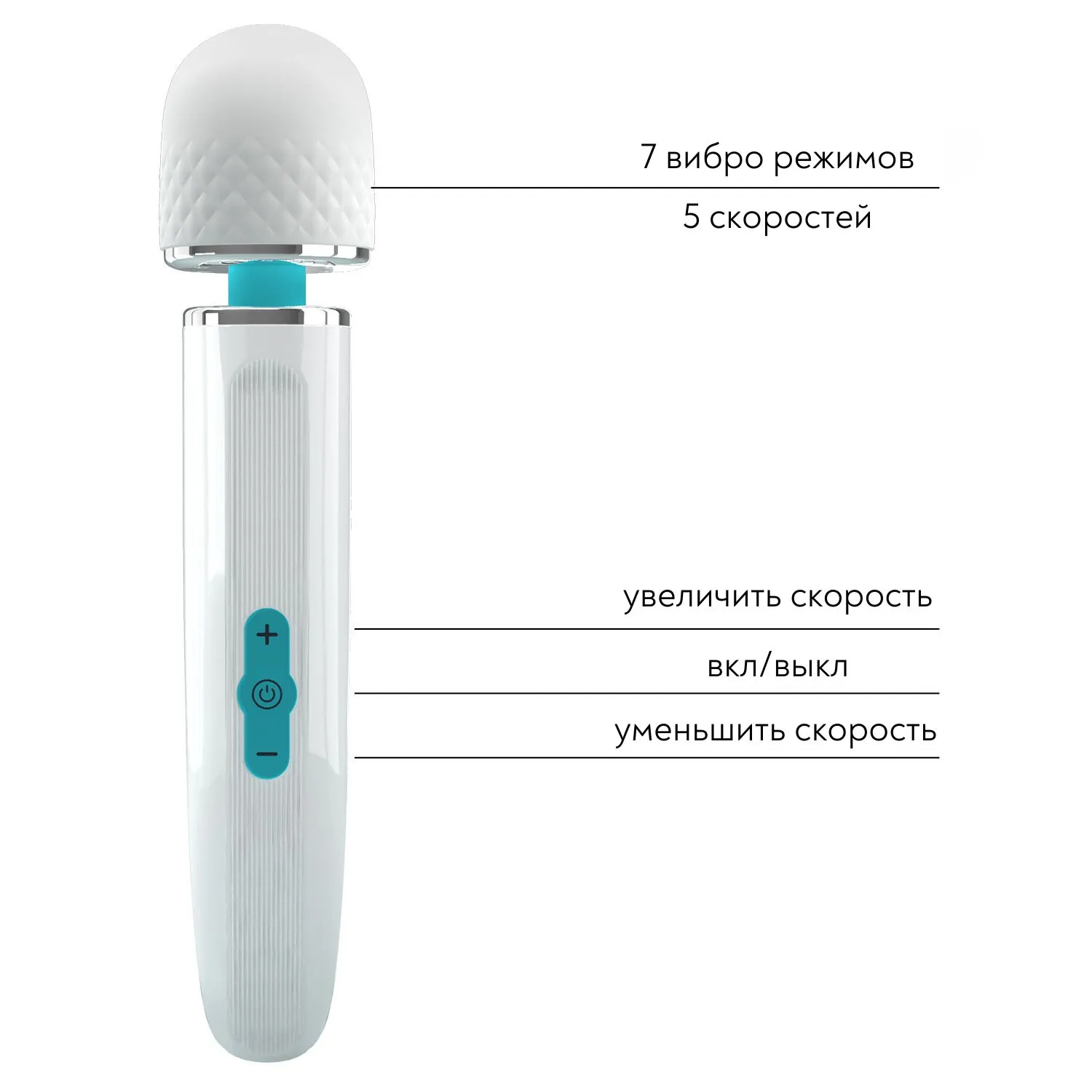 Этот очаровательный массажер оснащен сверхмощным мотором для интенсивных вибраций. С его округлой головкой, массажер можно использовать для самых разных целей. Этот массажер имеет 5 уровней скорости и 7 режимов вибрации, которые легко управляются с помощью кнопок на ручке. Подарите себе мощные вибрации!