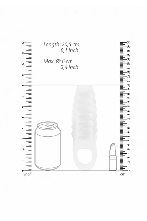 No. 21 Dong Extension – насадка открытого типа для увеличения длины и обхвата полового члена с кольцом для фиксации на мошонке. Она имеет спиралевидную форму для более оптимальной стимуляции. Насадка произведена из высококачественного мягкого материала.