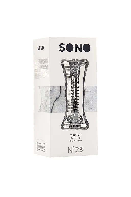 NO.23 - Stroker – мастурбатор открытого типа с ребристым внутренним рельефом и сужающимся туннелем. Он изготовлен из эластичного мягкого материала, прекрасно растягивается, подстраиваясь под любой размер при этом плотно облегая член. Мастурбатор не скользит, удобно и комфортно располагаясь в руке.