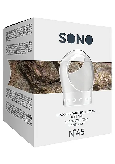 No45 - Cockring with Ball Strap – простое и элегантное эрекционное кольцо для пениса и мошонки, изготовленное из эластичного, легко принимающего температуру тела материала.