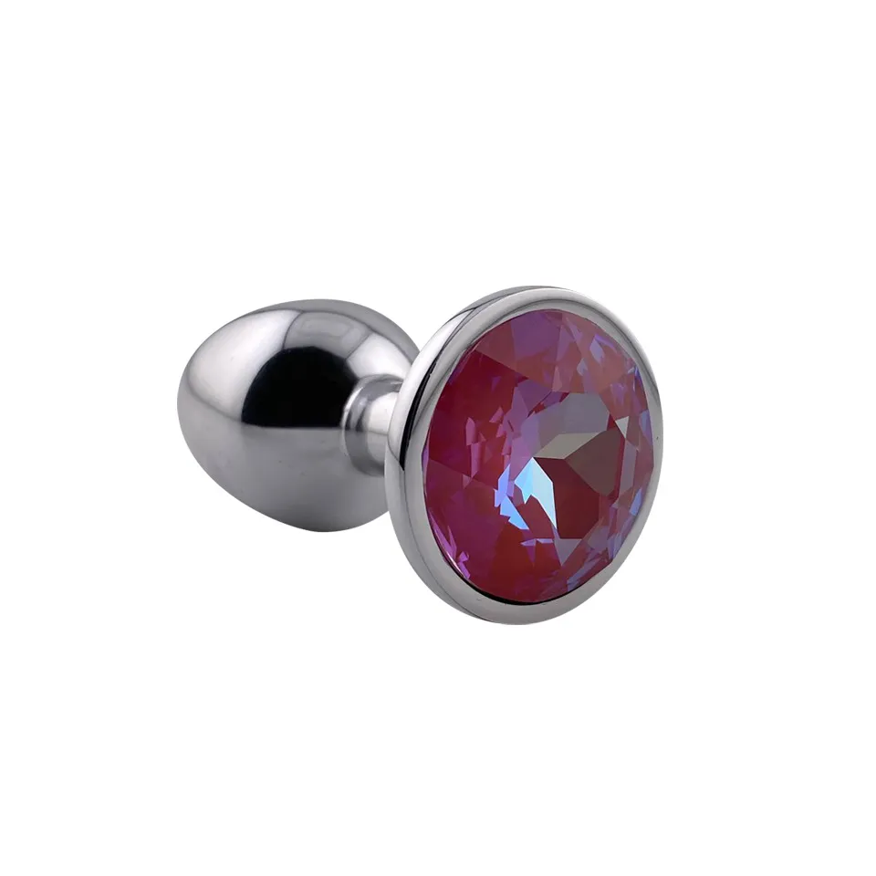 Литая анальная пробка имеет конусообразную форму и гладкую фактуру шлифованного металла. Легкий и прочный алюминиевый сплав гарантирует долговечность и гигиеничность. Крупный граненый кристалл в основании имеет специальное светоотражающее покрытие дна для усиления блеска и более яркого и красочного вида.