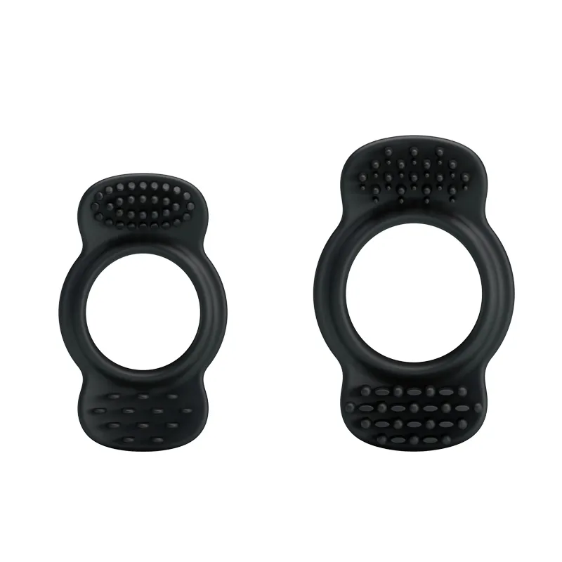 Набор эрекционных колец черного цвета для дополнительной стимуляции. Эластичные, легко растягиваются до необходимого размера. Эта маленькая изюминка поможет украсить сексуальную жизнь - усилить эрекцию и сделать половой акт более продолжительным. Характеристика: вес колец- 5 и 8 гр, внешний диаметр колец- 3,7 и 4,5 см, внутренний диаметр отверстий- 2,5 и 3 см. Упаковка: блистер.