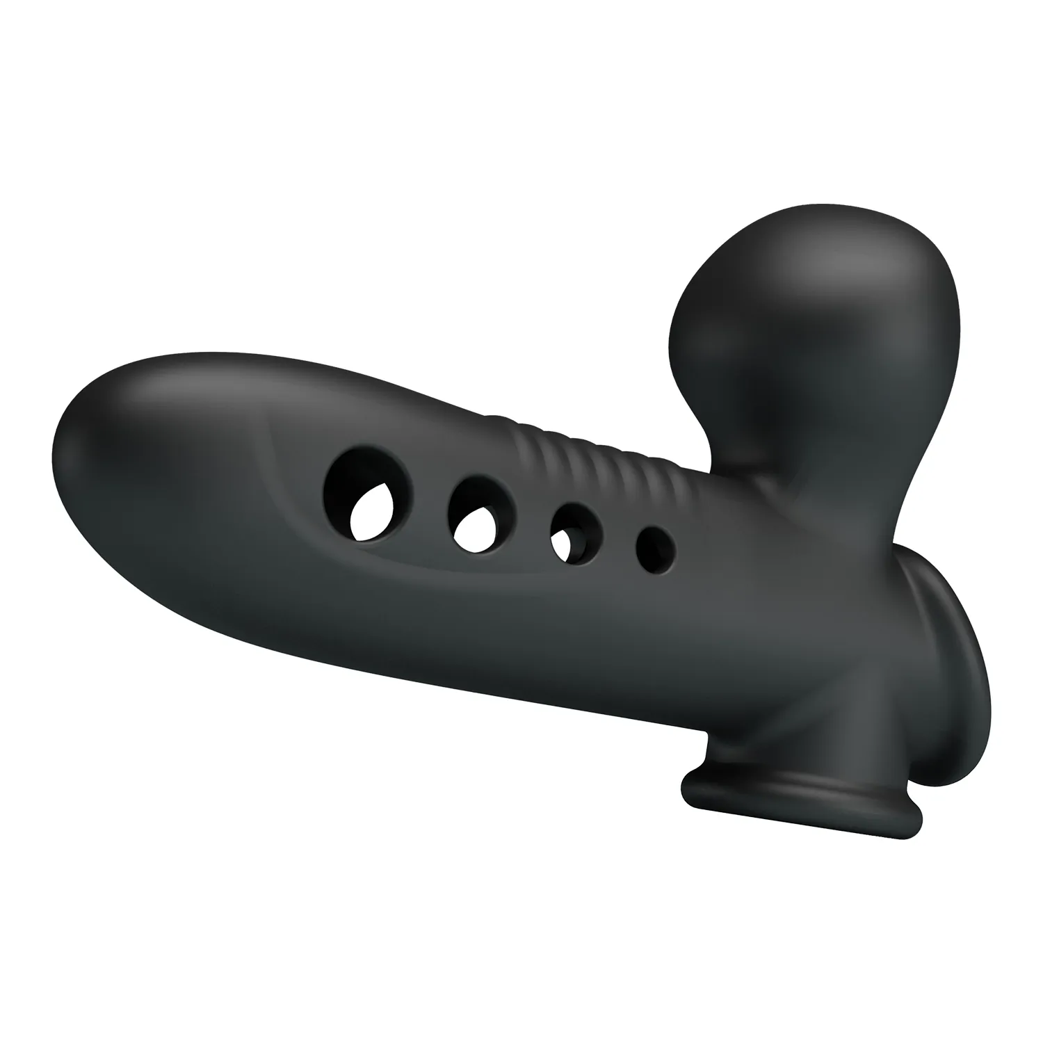 Насадка на пенис с воздушной подушкой добавляет дополнительную толщину, улучшая выносливость. Воздушная подушка на головке пениса надувается в процессе использования для усиленной стимуляции, а регулируемый ремешок на яичках помогает продлить время полового акта. Устройство выполнено из высококачественного силикона. Общая длина - 18,4, диаметр головки - 4,9см.