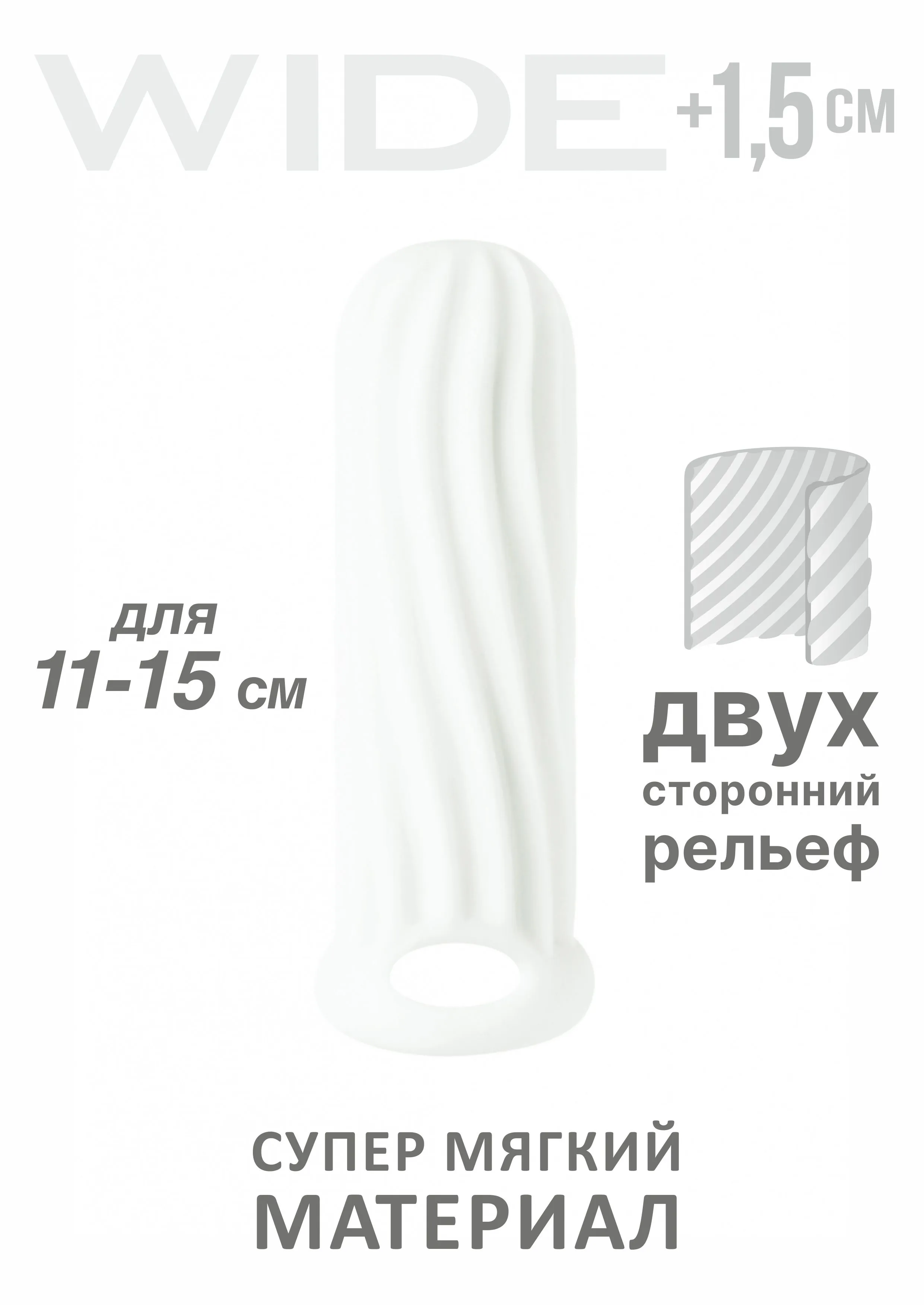 Насадка Wide коллекции Homme обеспечивает увеличение размера пениса в ширину. Материал насадки - гипоаллергенный, создающий имитацию мягкой и шелковистой «кожи» ТПЕ. Фиксирующее кольцо на мошонку не только удерживает фаллоудлинитель, но и благодаря сдавливанию может усиливать эрекцию. Двухсторонний нереалистичный рельеф насадки позволит одновременно стимулировать сразу обоих партнеров во время полового акта и дополнительно подарит приятные ощущения. Благодаря толстым стенкам, насадка увеличивает диаметр пениса до 1,5 см. Насадка отлично тянется, продлевает время интимной близости и компенсирует анатомическое несоответствие между партнерами. Материал ТПЕ, общая длина 13 см, длина внутреннего тоннеля 13 см, толщина стенки 7 мм