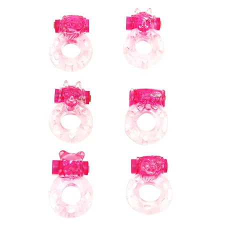 Набор из 6 разных колечек BI - 026043 В наши дни все больше влюбленных пар приобретают различные аксессуары, чтобы разнообразить свою сексуальную жизнь. Большую популярность имеет набор из 6 разных колечек BI-026043, выполненных из нежного эластичного материала. Кольца яркого цвета дарят партнерше новые ощущения и способствуют замедлению эрекции у партнера, поэтому половой акт становится просто изумительным. Набор из 6 разных колечек отличается своей оригинальностью – каждое колечко имеет забавную мордашку с вибропулей, которую можно включить с помощью кнопки и романтическое настроение с бурей оргазмов гарантировано. Характеристики набор из 6 разных колечек BI-026043: материал – силикон, цвет – розовый, размер – 4,5х3,7 см, производитель - Baile (Китай).