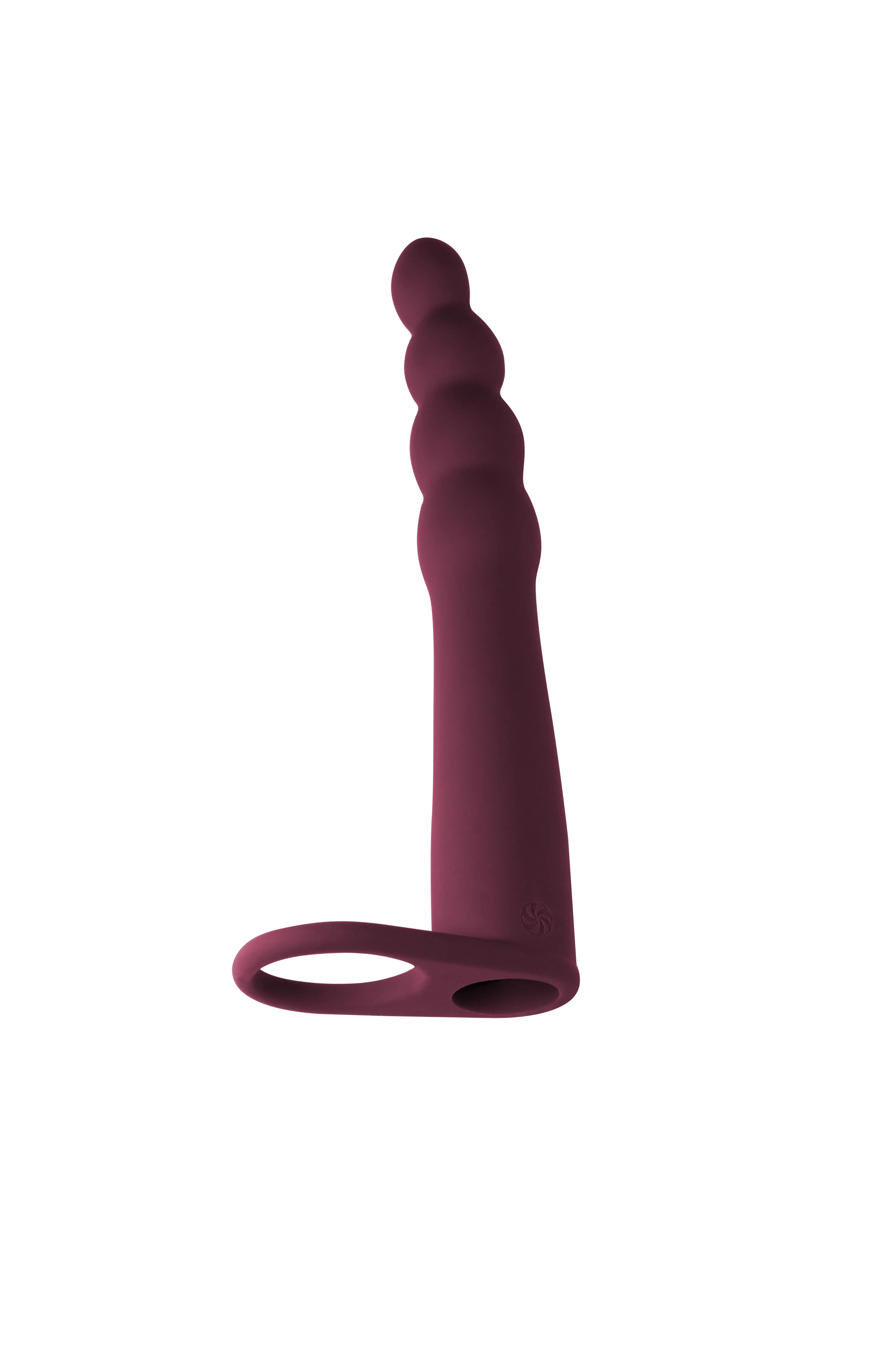 Насадка для двойного проникновения Bramble из гипоаллергенного силикона. Обладает рельефной и гибкой формой. Надежно крепится на основание пениса благодаря силиконовому кольцу. Внутренний диаметр кольца – 3,1см. Кольцо хорошо тянется и подходит на любой размер. Дополнительная стимуляция осуществляется благодаря вибропуле с 10 скоростями. Она работает от 1 батарейки типа ААА (не входит в комплект). Легко извлекается из силиконовой насадки и может использоваться отдельно.