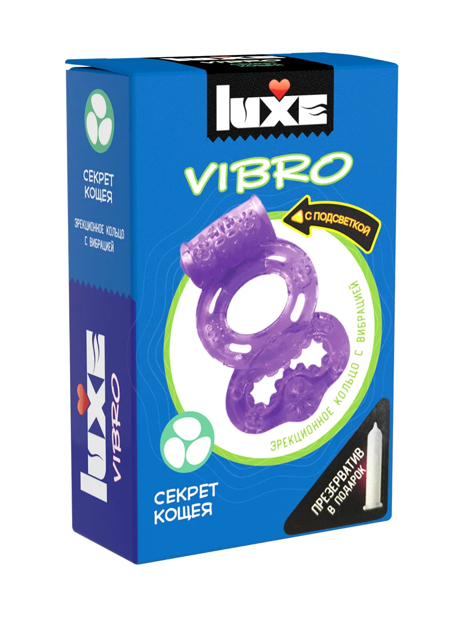 Двойное виброкольцо Секрет Кощея- это игрушка, которая надевается на половой член, перекрывая отток крови, и следовательно, усиливает эрекцию и замедляет процесс семяизвержения. При этом, вибрирующая часть кольца дополнительно стимулирует женщину.