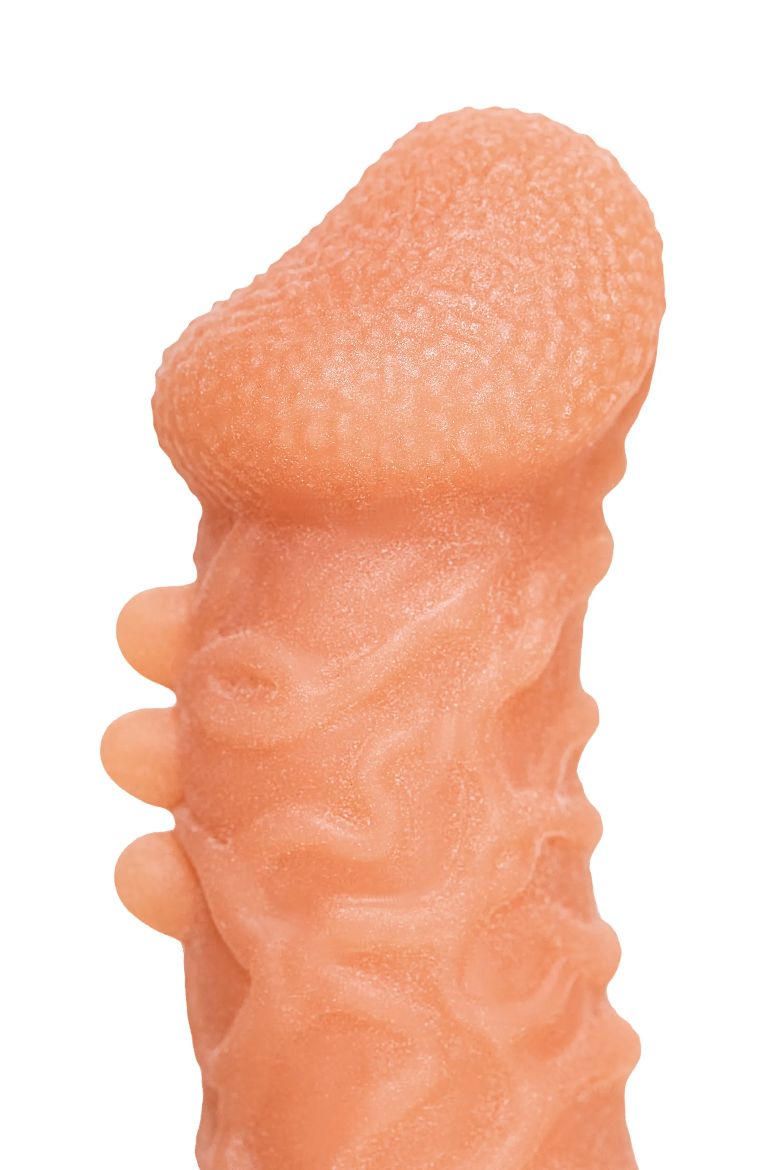 Увеличивающая насадка с изгибом и фантазийным рельефом в виде вен и пупырышек от KOKOS открывает новые возможности для взаимного удовольствия и воплощает фантазии о внушительном размере пениса. Увеличенный размер и объем полового члена добавляет мужчине уверенности в своих сексуальных возможностях. Дополнительная стимуляция партнерши для яркого и насыщенного оргазма. Увеличение продолжительности полового акта у мужчины - задержка эякуляции, и наращивание темпа приближения оргазма у женщины. Реалистичная насадка на пенис - необходимый элемент для вашей сексуальной игры, если вы хотите максимально удовлетворить свою партнершу и сделать ваш секс незабываемым. Насадка придает дополнительный объем и длину половому члену. Мощная головка имеет рельеф из мелких пузырьков и крупный выступ. Изогнутая форма и три выступающих бугорка очень хорошо стимулируют зону G и вход во влагалище. Контрастный переход от головки к стволу и 3 выпуклости на передней части насадки, благодаря изогнутой форме, увеличивают силу стимуляции самых эрогенных зон влагалища. Особенный рельеф в виде многочисленных вен по всему стволу насадки деликатно ласкает чувствительные зоны. Дополнительный объем дарит то самое чувство наполненности, увеличивая поток возбуждения. Мужчина тоже будет ощущать стимуляцию за счет давления стенок влагалища на пенис. Для идеальной посадки по длине пениса используйте губчатую вставку, которая находится внутри насадки, подрезав ее до нужной длины. Не забудьте надеть презерватив в этом случае. В основании есть отверстие для мошонки, с помощью которого вы можете надежно зафиксировать насадку на пенисе и не ограничивать себя в активных движениях. Супер эластичный и нежный материал быстро принимает температуру тела, отлично тянется, сохраняя при этом прочность. Долговечность использования при соблюдении правил хранения и ухода за насадкой. Используйте с насадкой лубрикант только на водной основе. Насадка сделана из высококачественного безвредного для человеческого организма материала, который прошел необходимые тестирования и сертификацию. Длина: 13,8 см Диаметр: 3,6 см Размер: S Цвет: телесный Материал: TPE Страна бренда KOKOS: Корея .