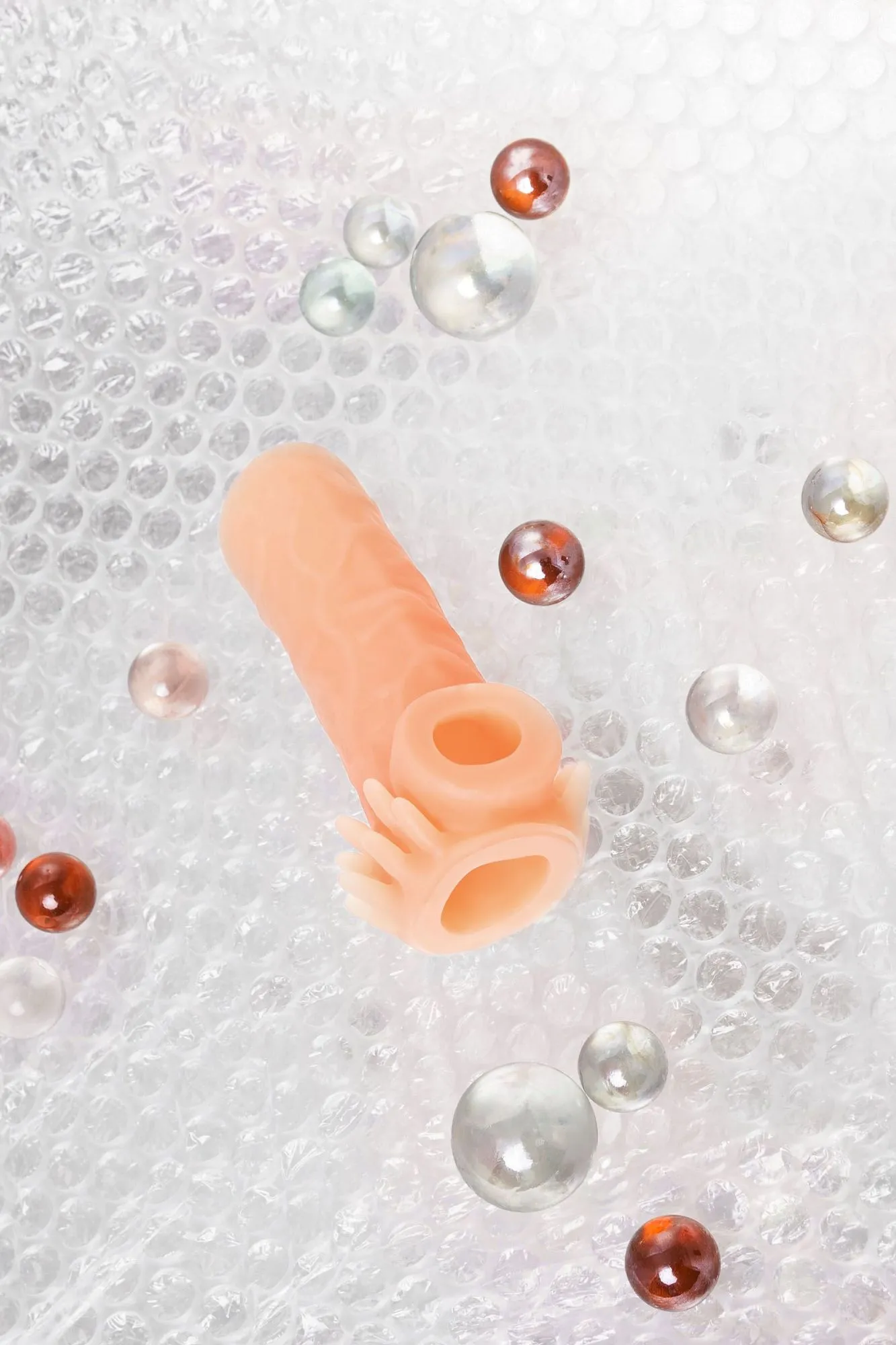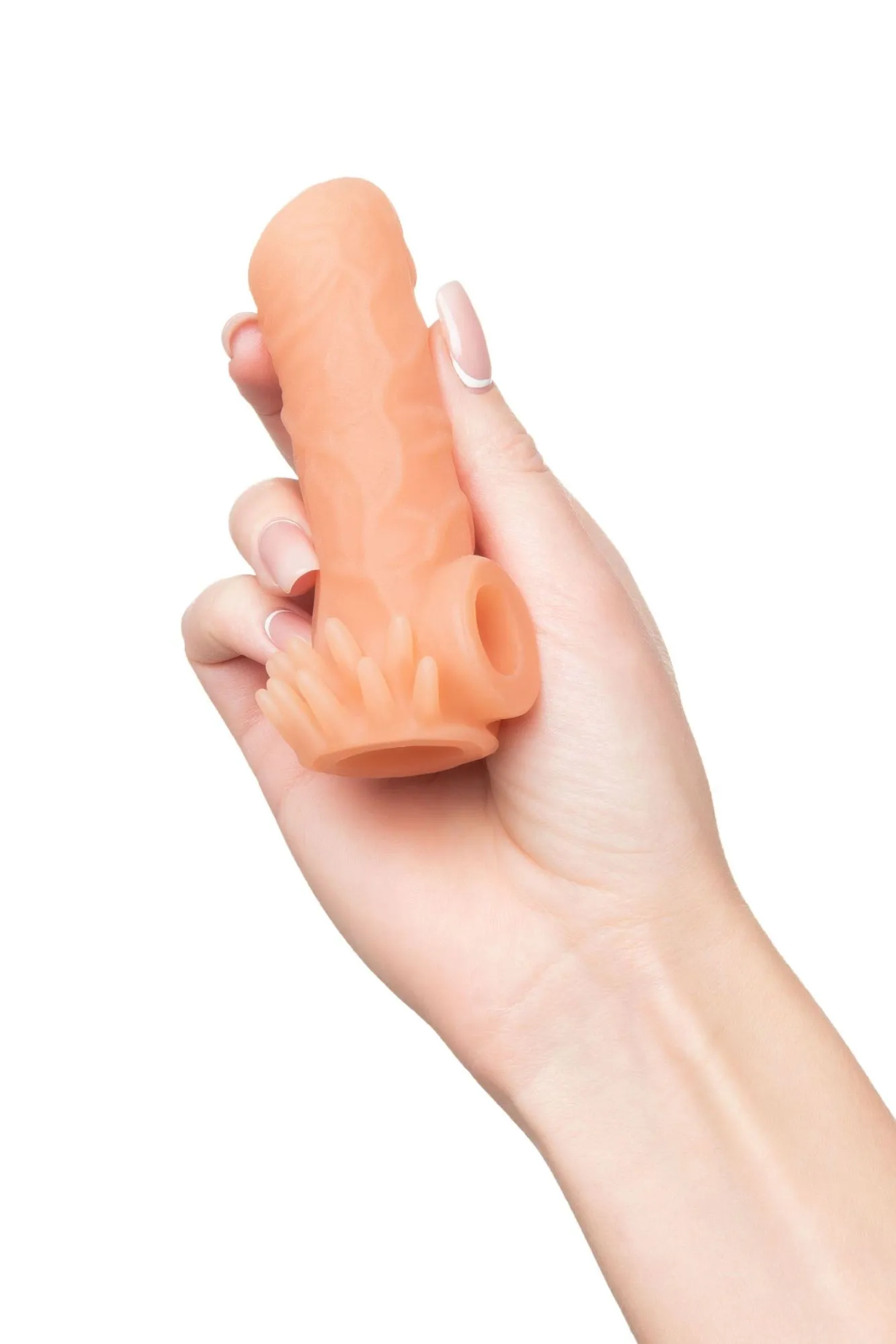 Открытая насадка с фантазийным рельефом от KOKOS предназначена воплотить фантазии о взаимном удовольствии. Реалистичная насадка на пенис - необходимый элемент для вашей сексуальной игры, если вы хотите максимально удовлетворить свою партнершу и сделать секс незабываемым. Откройте новые возможности: Увеличенный объем полового члена на 30% добавляет мужчине уверенности в своих сексуальных возможностях. Дополнительная стимуляция партнерши с помощью рельефа для яркого и насыщенного оргазма. Увеличение продолжительности полового акта у мужчины - задержка эякуляции, и наращивание темпа приближения оргазма у женщины. Насадка имеет форму “рукав”, плотно прилегает к пенису, создавая дополнительную толщину и оставляя головку открытой. Это позволяет сохранить чувствительность головки, задерживая эякуляцию. В основании есть отверстие для мошонки, с помощью которого вы надежно зафиксируете насадку на пенисе, не ограничиваясь в активных движениях. Насадка, за счет плотного облегания мошонки и головки, усиливает эрекцию. Классический рельеф в виде многочисленных выпуклых вен по всему стволу насадки стимулирует зону G, вход во влагалище и настойчиво ласкает чувствительные зоны. Два ряда мягких усиков в основании насадки дополнительно стимулируют клитор и половые губы и делают ощущения оргазма многократно ярче. Дополнительный объем дарит то самое чувство наполненности, увеличивая поток возбуждения. Мужчина тоже будет ощущать стимуляцию за счет давления стенок влагалища на пенис. Супер эластичный материал быстро принимает температуру тела, отлично тянется, сохраняя при этом прочность. Нежное и мягкое покрытие такое же приятное на ощупь, как и человеческая кожа. Насадка сделана из высококачественного безвредного для человеческого организма материала, который прошел необходимые тестирования и сертификацию. Долговечность использования при соблюдении правил хранения и ухода за насадкой. Используйте с насадкой лубрикант только на водной основе. Длина: 10 см Диаметр: 3,5 см Размер: S Цвет: телесный Материал: TPE Страна бренда KOKOS: Корея