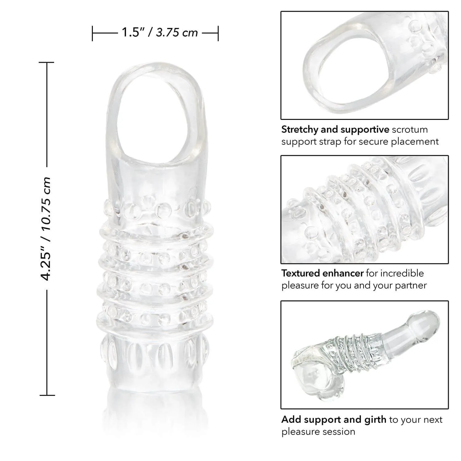 Насадка Stimulation Enhancer выполнена из термопластичного эластомера и хорошо тянется, поэтому Вы не будете испытывать дискомфорта во время ее ношения.