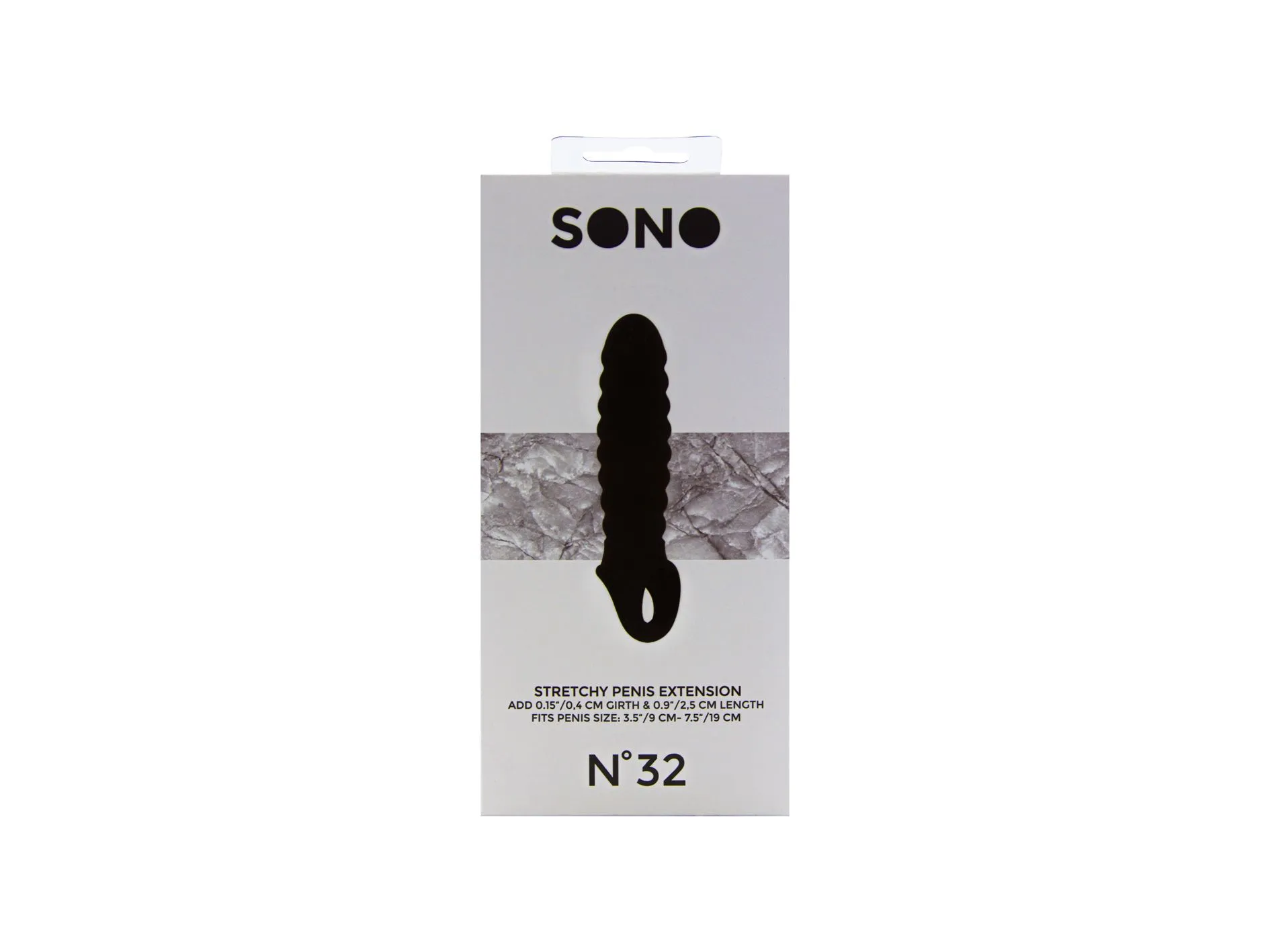 No.32 Stretchy Penis Extension - насадка закрытого типа для небольшого увеличения длины и обхвата полового члена с кольцом для фиксации на мошонке. Она имеет округлую головку и спиралевидную форму для более оптимальной стимуляции. Насадка произведена из высококачественного мягкого материала.