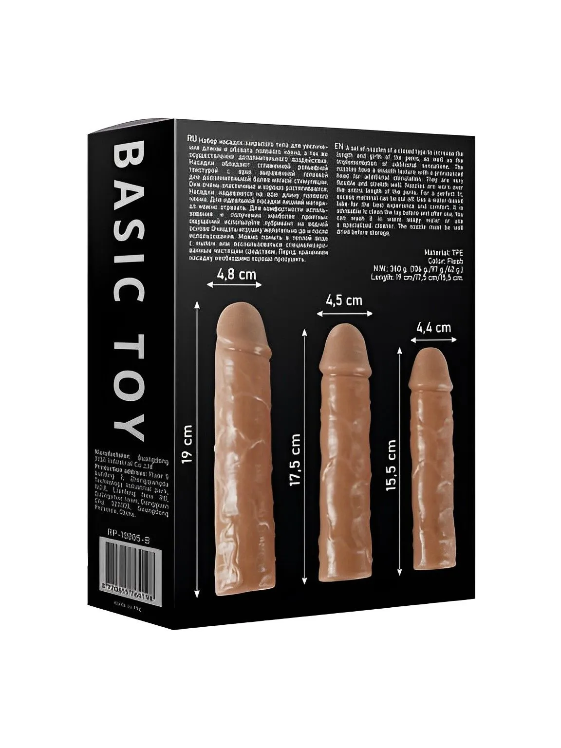 Набор насадок закрытого типа для увеличения длины и обхвата полового члена, а так же осуществления дополнительного воздействия. Насадки обладают сглаженной рельефной текстурой с ярко выраженной головкой для дополнительной более мягкой стимуляции. Они очень эластичные и хорошо растягиваются. Насадки надевается на всю длину полового члена. Для идеальной посадки лишний материал можно отрезать.