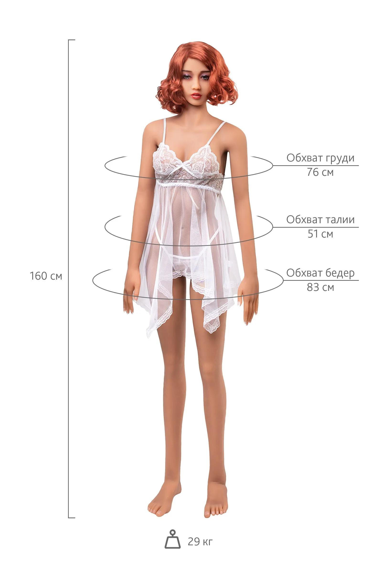 Привет! Меня зовут Molly. Я знаю, что выгляжу скромно, но это не имеет значения. Ведь на самом деле внутри меня бушует ураган эмоций. То, что не увидеть снаружи, то, что находится под моим тихим, прилежным внешним видом. Ты знаешь, что люди говорят о “тихих”? Я не обманываю, я могу показать это, и тебе понравится то, что ты обнаружишь. Когда я распускаю свои волосы, мне действительно тяжело справляться с влечением. Я умна и красива, и мне действительно нравится быть с мужчинами. По крайней мере, я точно хотела бы сидеть рядом с тобой и смотреть все фильмы о “Звездных войнах”, добавив при этом "перчинки"! Пригласи меня к себе, мы скромно поболтаем, а потом я покажу тебе “тихий омут”. у меня нежная кожа из реалистичного материала я могу меняться по твоему настроению – у меня сменный парик я могу обнимать тебя и принимать разные позы – у меня гибкие конечности я могу принимать тебя тремя способами – орально, анально и вагинально глубина влагалища 18 см, глубина ануса 18 см, глубина полости рта 15 см мои параметры: 76х51х83 см, рост 160 см, длина стопы 21 см, вес 29 кг В комплект к каждой кукле входит: Нижнее белье Парик и расческа Белая комбинация USB-нагреватель Очищающее устройство Белые перчатки Во избежание окрашивания и деформации поверхности куклы рекомендуется использовать бельё и принадлежности, идущие в комплекте. Вес транспортной коробки 5-7 кг Предепреждение: кукла может содержать следы талька на поверхности