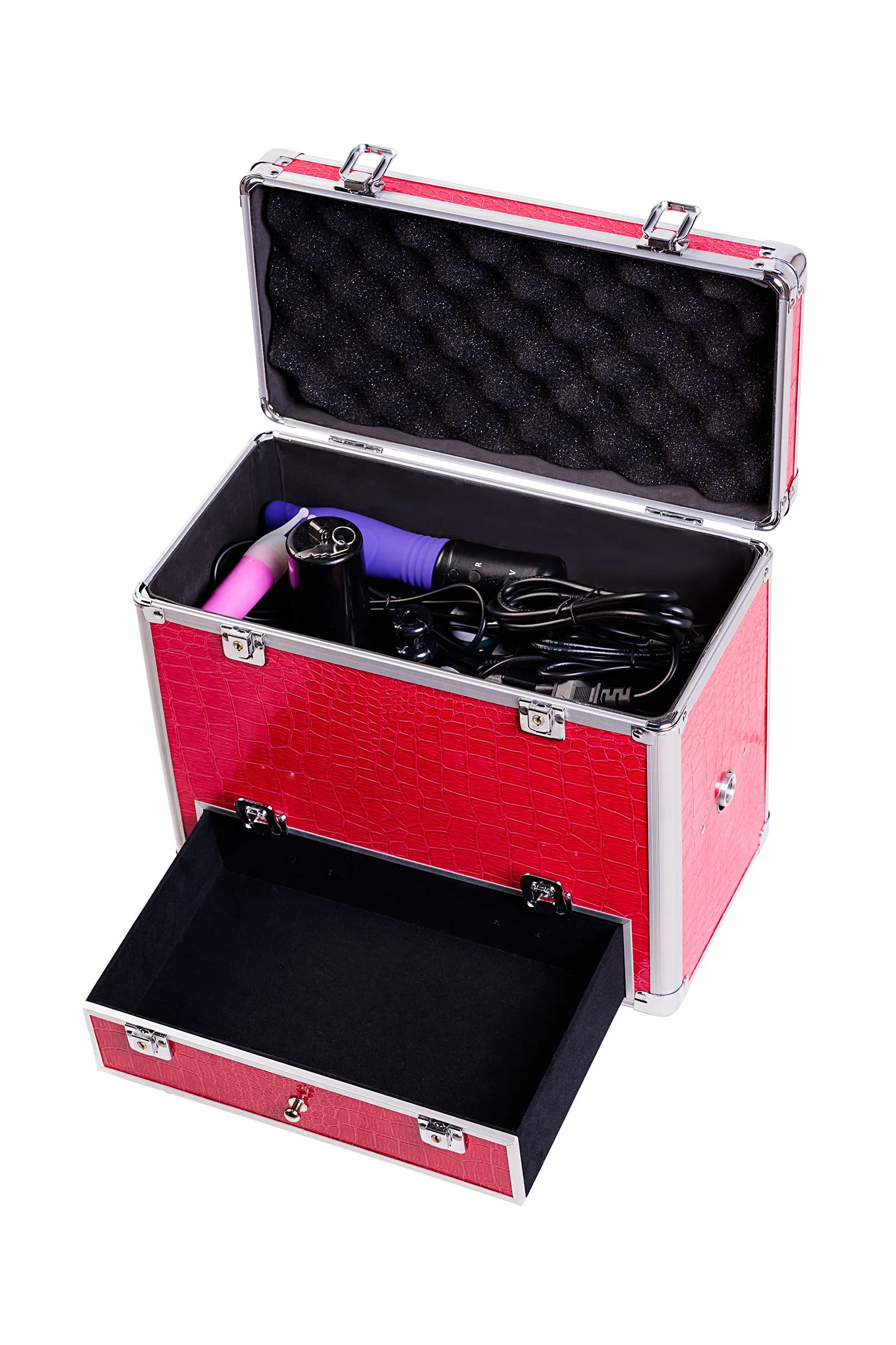 Этот чудо-чемоданчик Wiggler — настоящая находка не только для получения сексуального удовольствия, но и для сохранения интимных тайн. Эффективную стимуляцию эрогенных зон обеспечивают реалистичный фаллос-насадка с внутренним моторчиком и механизмом перекатывающихся шариков, клиторальный стимулятор и вибратор, подключаемый к секс-машине. А возможность спрятать аксессуары в кейс, внутри которого спрятана мощная секс-машина, помогает сберечь личную жизнь от посторонних взглядов. Итак, регулируемая частота фрикций достигает 300 в минуту, длина фрикций — 6 см. Такая мощность секс-машины гарантировано доводит до яркого оргазма. Благодаря Vac-U-Lock-адаптеру использовать можно и другие сменные фаллоимитаторы с креплением Vac-U-Lock.Также в комплекте насадка фаллоимитатор-реалистик из силикона марки FeelSoft, длина 18 см, диаметр 4,3 см и клиторальный стимулятор с мощной вибрацией. На секс-машину не устанавливается.Работает от одной батарейки формата АА (пальчиковая, в комплект не входит) Самые разнообразные интимные игры и ошеломляющий результат — этот секс-чемодан сделает всё на высшем уровне!