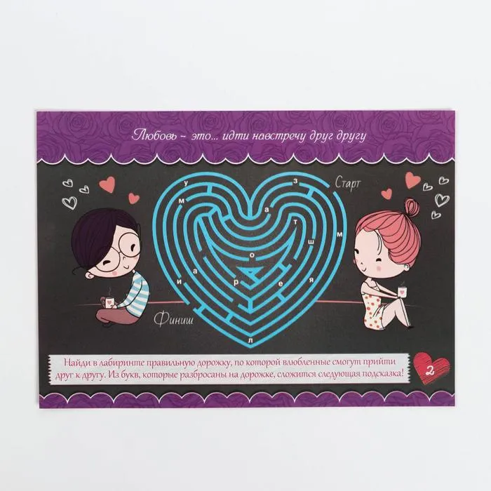 Только представьте: вы вручаете любимому человеку письмо, а там… большой секрет. Оказывается, чтобы найти сюрприз, ему нужно идти по следу из подсказок. Верно разгадав шифр, ваша вторая половинка обнаружит сюрприз, который вы спрячете в таинственном месте.