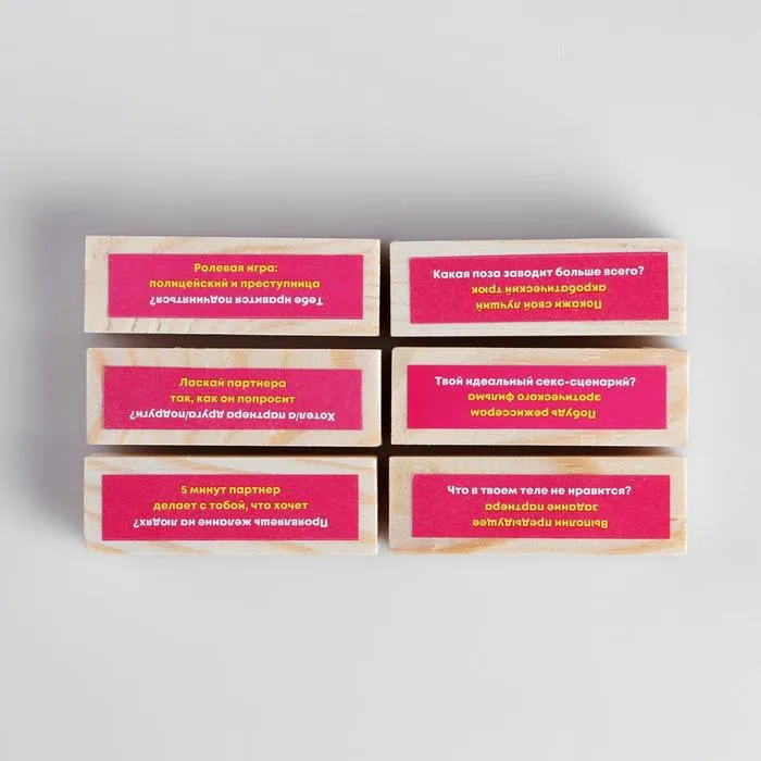 На каждом из брусков есть вопрос и задание — дерзкие, каверзные и откровенные, на грани между смущением и разоблачением.