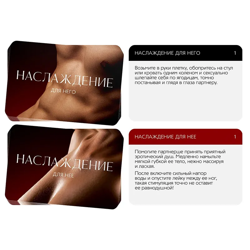 Как пользоваться набором? Начните игру с колоды наслаждений «Для него» и «Для неё». Определите, кто начнёт игру. Если это девушка, то она вытягивает карточку из колоды «Наслаждение для неё». Если это мужчина – из колоды «Наслаждение для него».