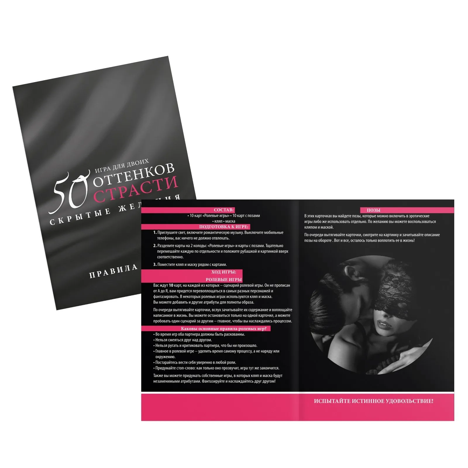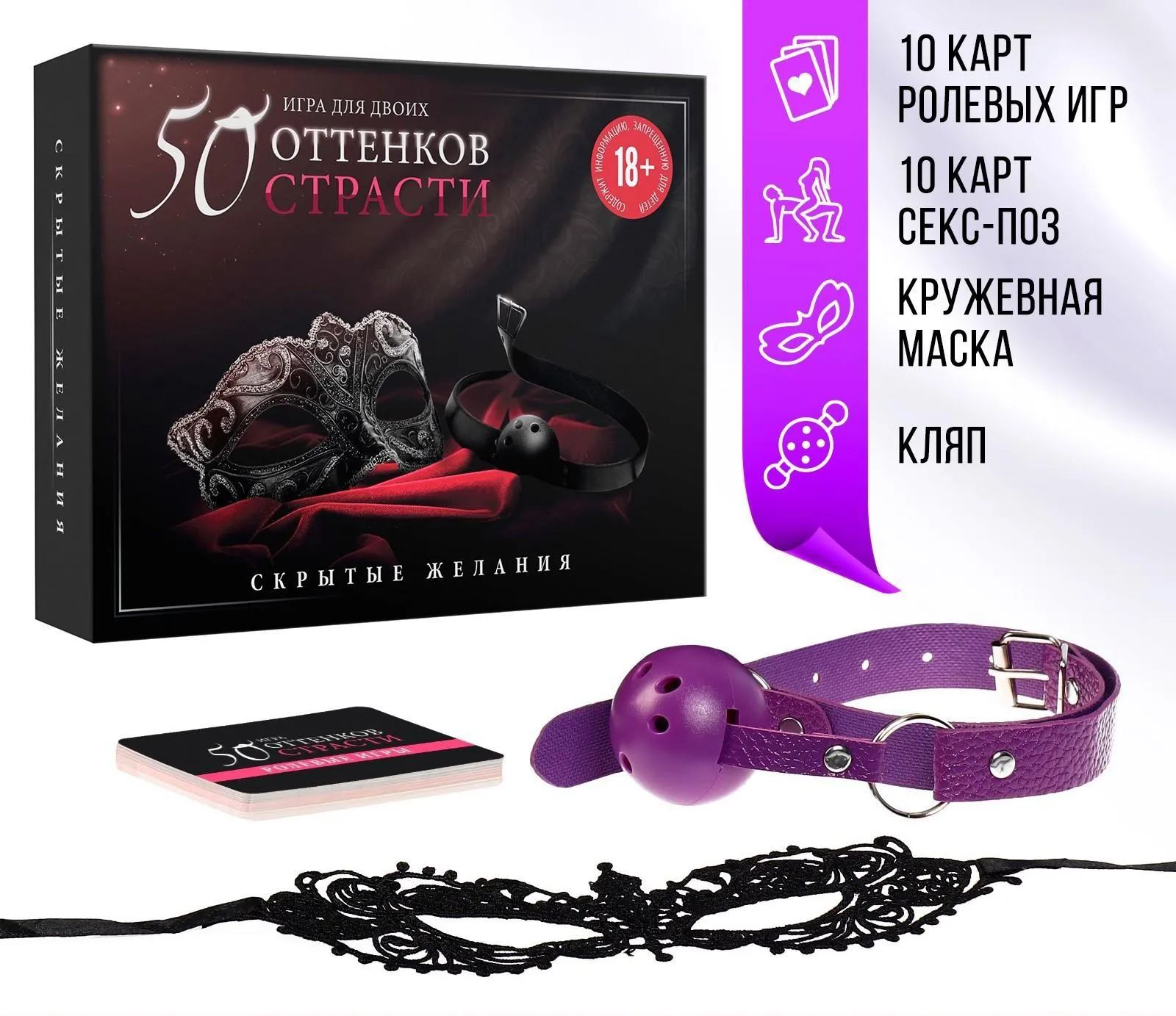 Игра для двоих «50 оттенков страсти. Скрытые желания», 3 в 1 (20 карт, маска, кляп), 18+