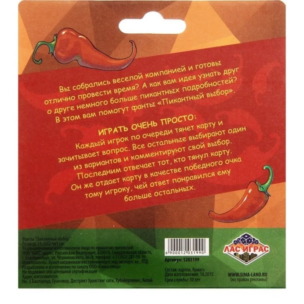 Что вы выберете: забыть своё белье в гостях или найти чужое у себя под подушкой? Мы все во внимании! Продолжайте по очереди вытягивать фанты и провоцировать друг друга пикантными вопросами. В игре ответ должны озвучить все участники. А тот, кто тянул фант, отвечает последним и присуждает карточку самому оригинальному игроку.