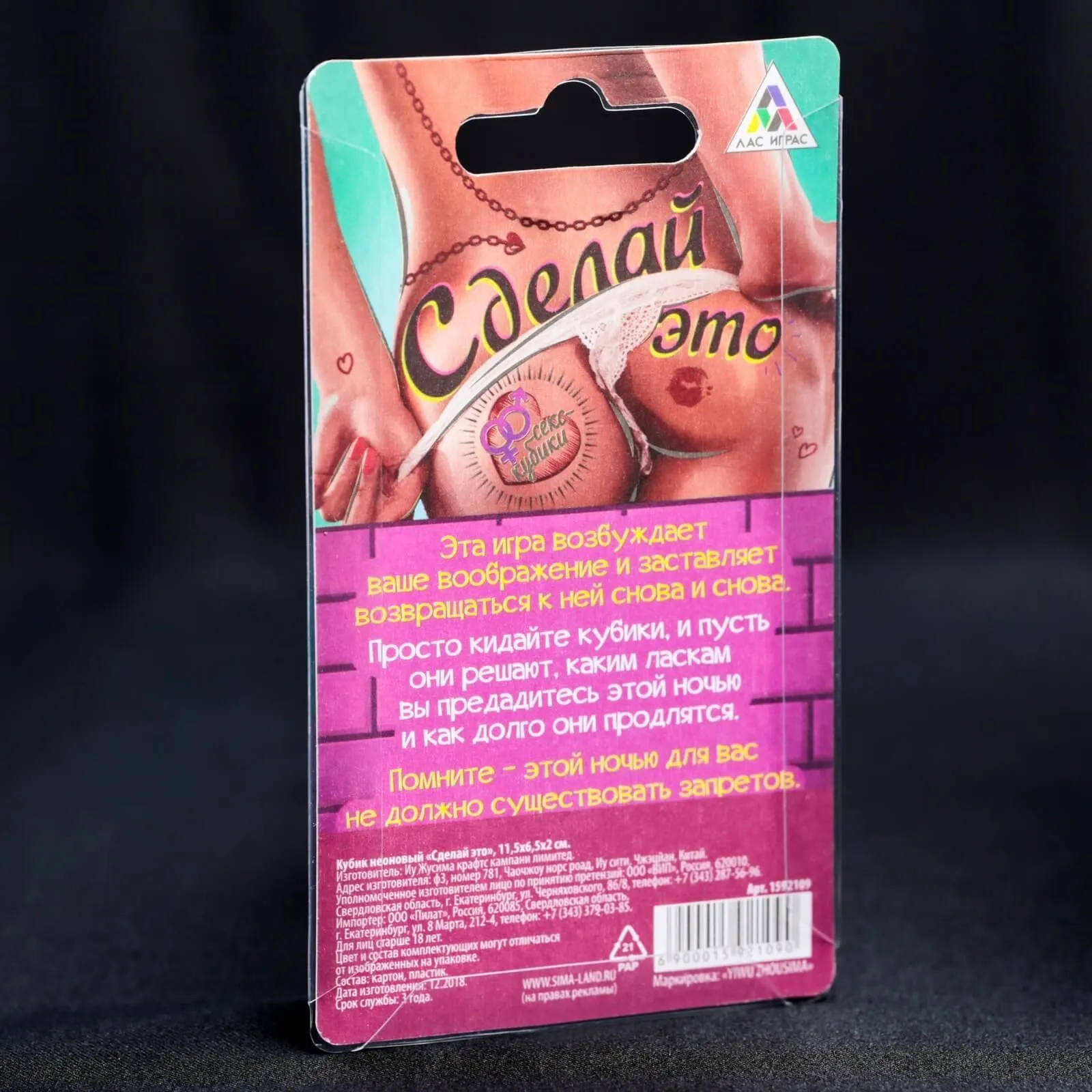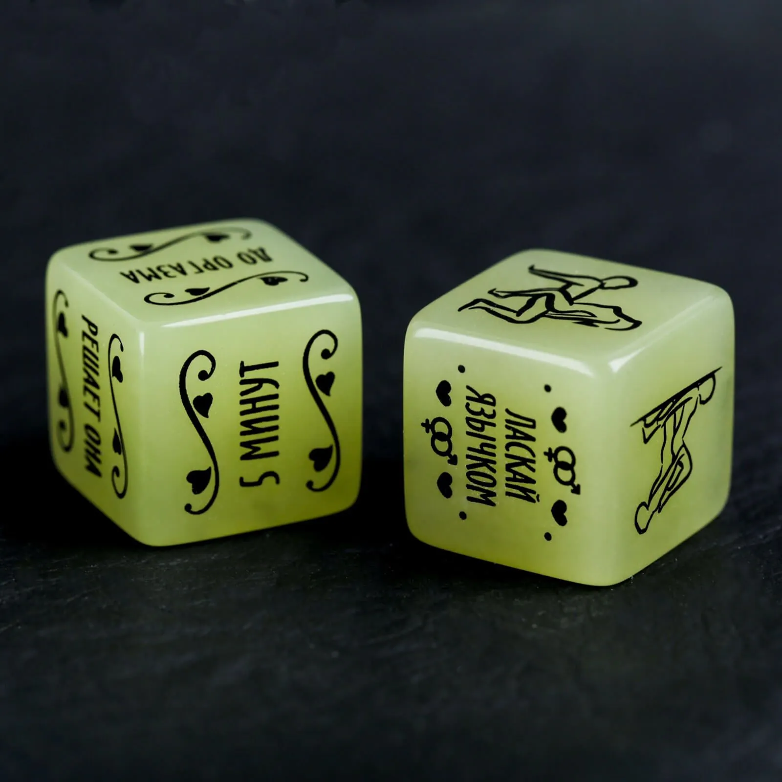 Неоновые кубики для эротических игр "Сделай это" помогут паре доставить друг другу незабываемое удовольствие за определенное время. Бросьте первый кубик, чтобы узнать, какие ласки подарить партнеру, и второй, чтобы определить, как долго они продлятся. Кубики светятся в темноте, поэтому их будет очень удобно использовать ночью - в самое подходящее время для исполнения смелых желаний. Забудьте про все запреты и полностью отдайтесь своей страсти и новым удовольствиям!