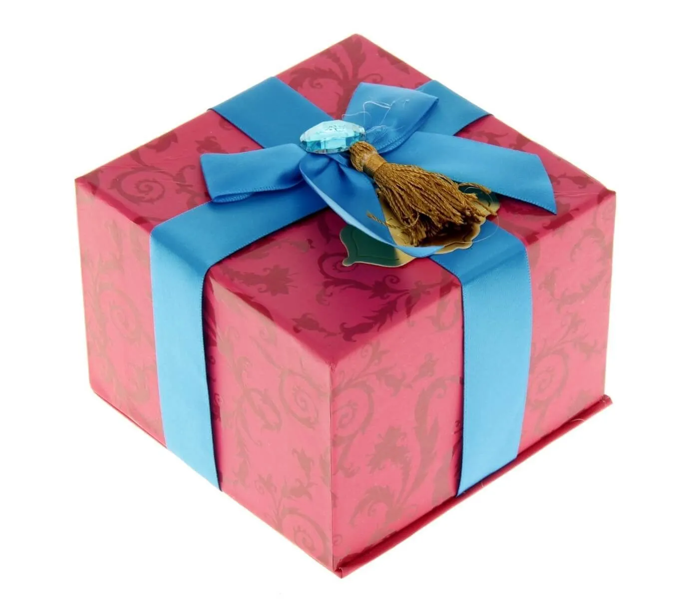 Подарочная коробка "Best wishes" с надписью "от всей души" будет завершающим штрихом для преподнесения Вашего подарка дорогому человеку. Коробка выполнена в розовом цвете и декорирована узором с цветочным мотивом, голубой атласной лентой с бантом и симпатичной кисточкой. Ее приятное оформление непременно обрадует получателя еще до вскрытия самого подарка и заставит его сердце биться чаще от предвкушения чего-то удивительного. Эта коробочка идеально подойдет для подарков небольшого размера.