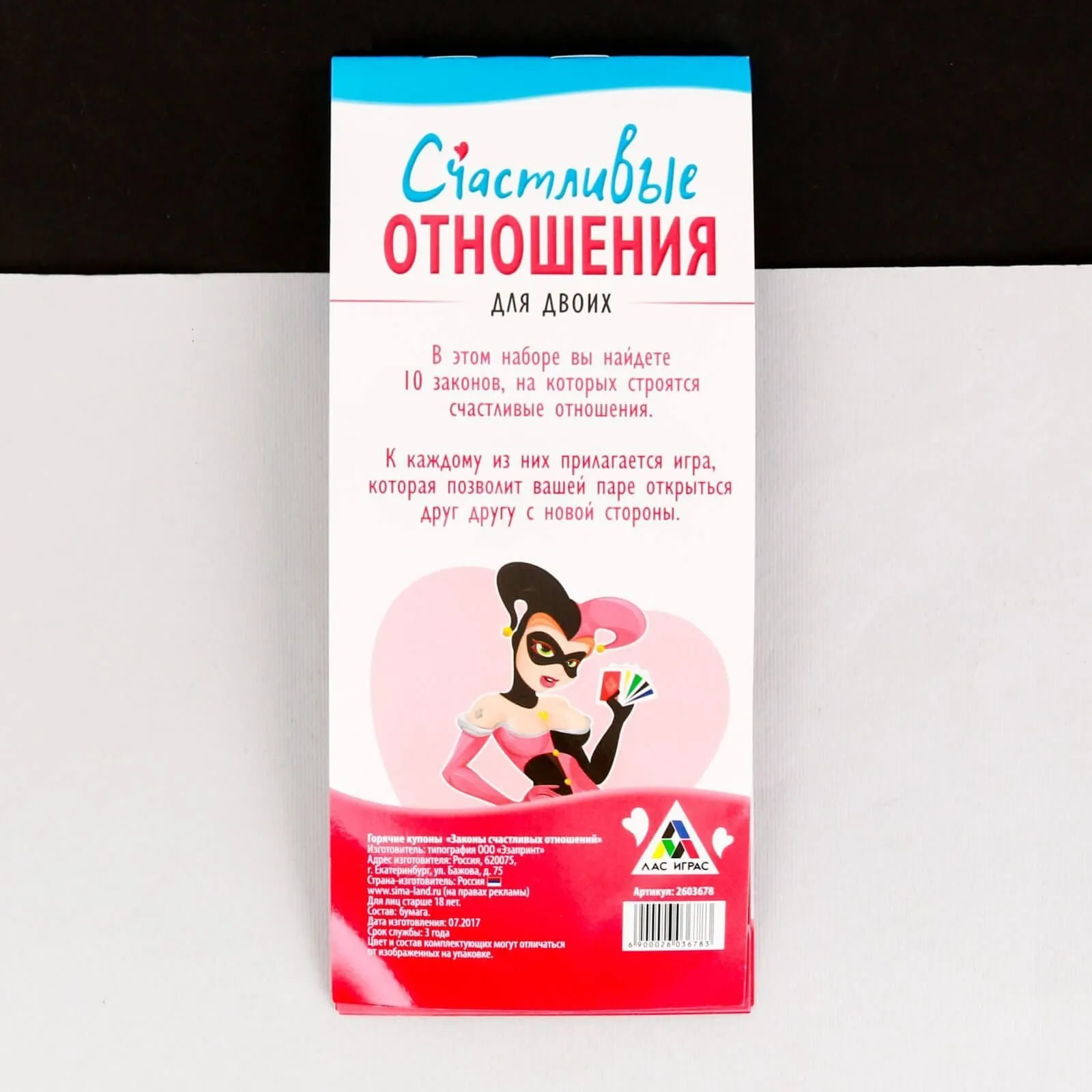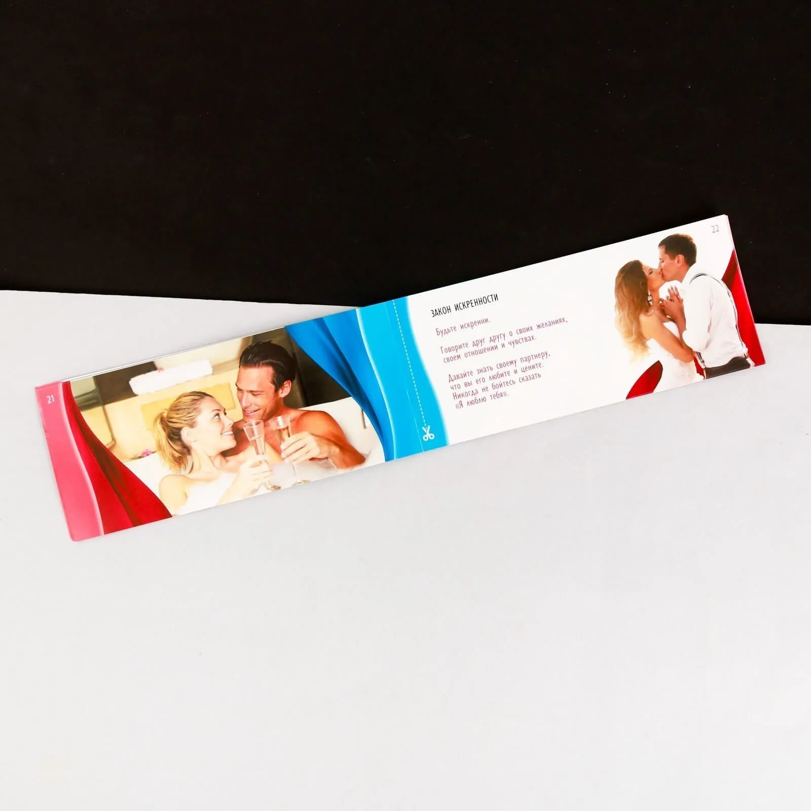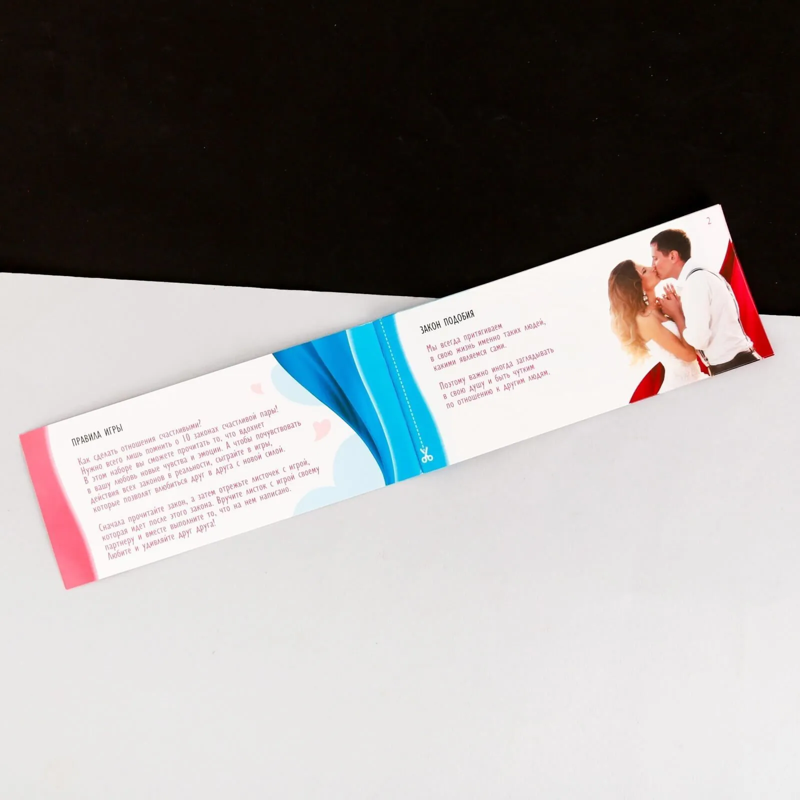 Этот набор содержит в себе купоны с 10 законами счастливых отношений и играми, которые помогут партнерам заново влюбиться друг в друга. Сначала прочитайте закон, а затем вручите листок с игрой партнеру, чтобы вместе сыграть в нее.
