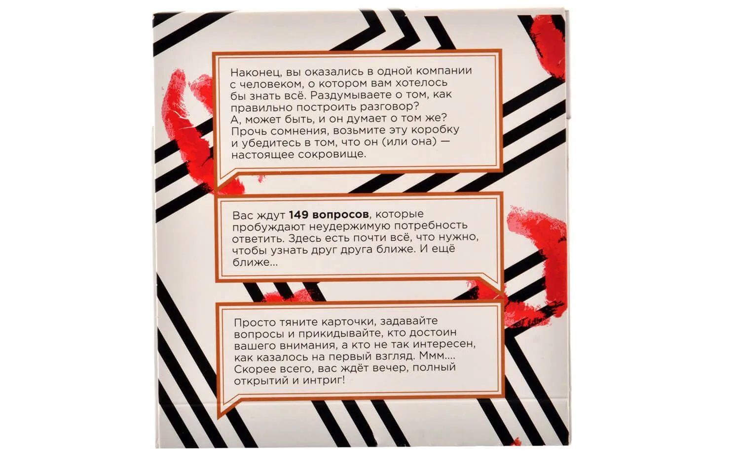 - Состав: 149 вопросов для интересного разговора, 1 разделитель для карт