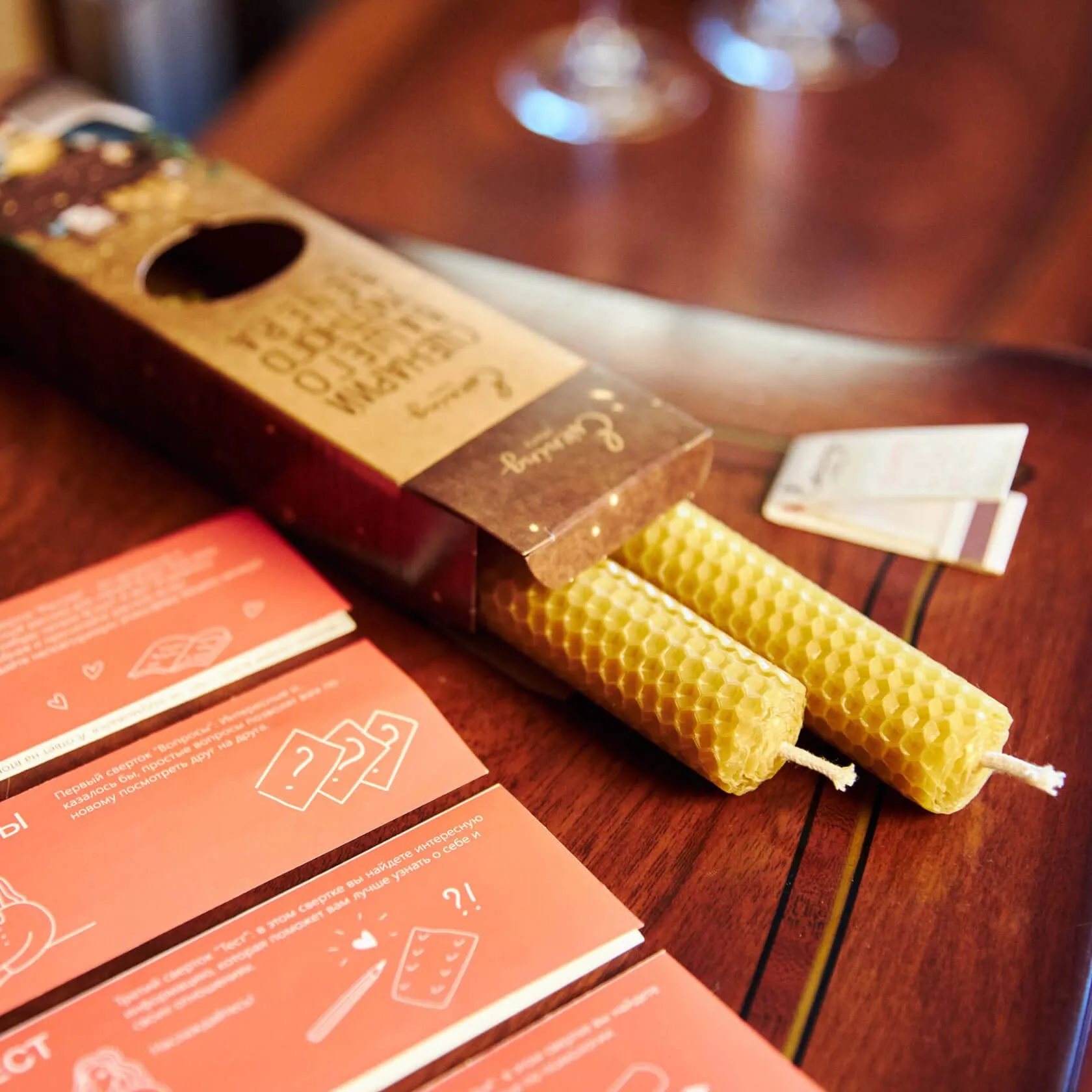 - Свечи ручной работы из натурального воска, для создания атмосферы. Длина каждой свечи 20,5 см, время горения около 3 часов