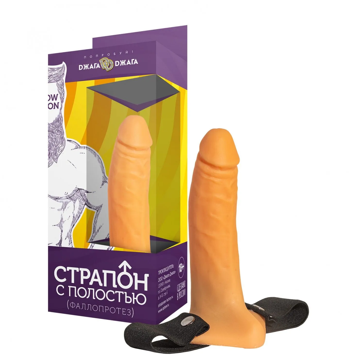 Страпон с полостью для полового члена в спокойном состоянии. Имеет удобное эластичное крепление к телу, шириной 2 см. Мягкий и приятный на ощупь. Рекомендуется использовать со смазками на водной основе. Может использоваться как мужчинами со слабой эрекцией, так и женщинами для доминирования.