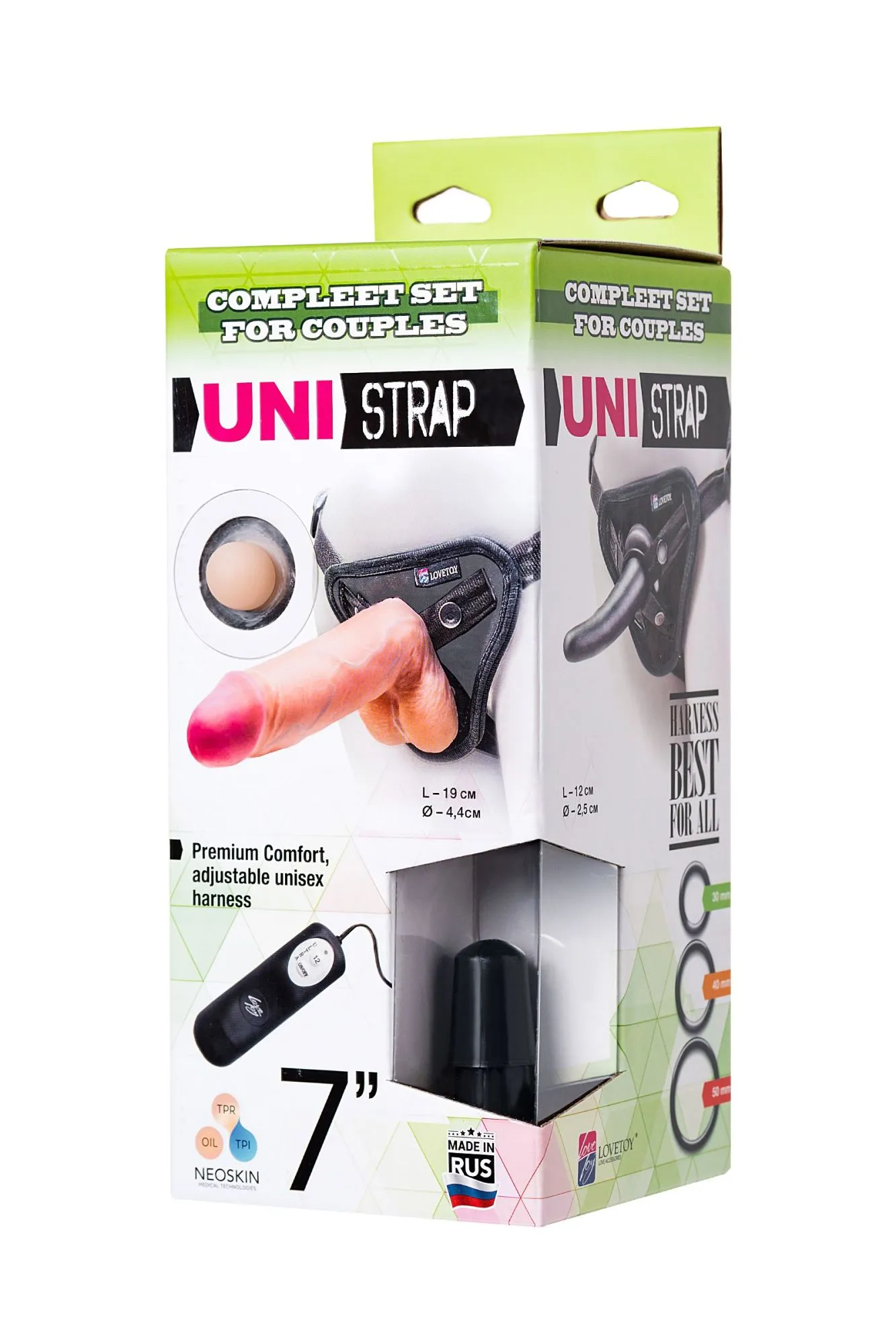 Лучшее предложение страпонов по соотношению цены и безупречного качества. • В комплекте прилагаются 2 насадки с разными характеристиками. • Два способа надежной фиксации на поясе. • Возможность идеальной регулировки. • Подходит как женщинам, так и мужчинам (унисекс). • Превосходный материал. • 12 режимов регулировки вибрации. • Бандажный пояс. • Жесткая коробка из микрогофры с пробником. • Длина реалистичного фаллоимитатора из неоскина с каркасом: 7 дюймов (19 см), диаметр 4.4 см. • Эластичная анальная (вагинальная) насадка 12 см, диаметр 2,5 см.