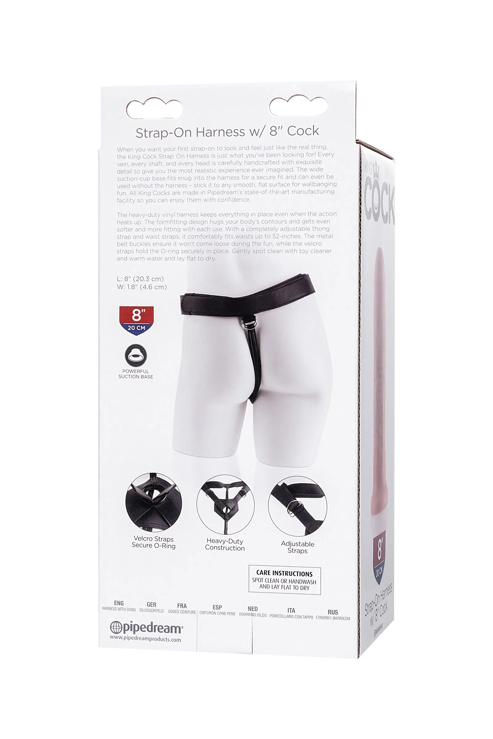 Комплект унисекс, состоящий из супер-реалистичной фаллос-насадки и трусиков King Cock Strap on Harness with 8" Cock Light от американского бренда Pipedream. Такой тандем раскрывает огромные горизонты для эротических игр. Качественные трусики из винила дополнены уплотнителем и кольцами для коррекции идеальной посадки, ремешки комфортно регулируются до 132 см – металлические пряжки ремня гарантируют, что он не ослабнет во время использования, а ремни на липучке надежно удерживают уплотнительное кольцо на месте. Фаллос изготовлен с анатомической прорисовкой ствола - внушительная головка, венозный рисунок, благодаря чему стимуляция становится невероятно приятной им максимально приближенной к реальному половому акту. Также насадку с присоской можно использовать отдельно в качестве классического фаллоимитатора, удерживая в руках, либо фиксируя присоску на плоскую ровную поверхность. Для большего удовольствия и комфорта рекомендуем использовать со смазкой на водной основе Премиальное качество материалов – залог того, что трусы не будут натирать, только комфорт и удовольствие! Материал: PVC Цвет: бежевый Длина: 21,6 см Рабочая длина: 20,3 см Диаметр: 4,6 см Водонепроницаемый Материал регулируемого ремня: винил, силикон, металл, TPE Страна бренда Pipedream: США