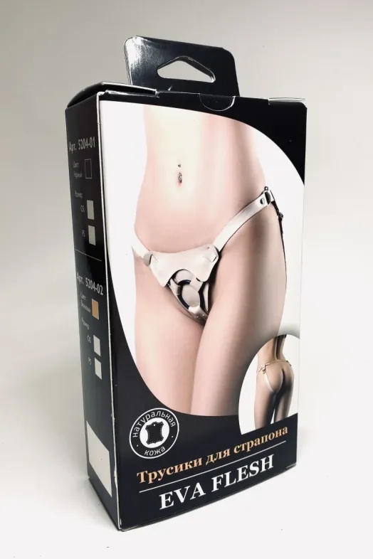 Трусики для страпона из качественной натуральной кожи в бежевом цвете.Фиксация на теле происходит с помощью ремешков, удобно затягивающихся по фигуре. Ремешки мягкие и приятные к телу. Спереди на кнопках фиксируется кольцо для насадки, которое удобно заменить на желаемый размер. В комплекте с трусиками 3 кольца с внутренним диаметром 3, 4 и 5см, что позволяет использовать самые разнообразные насадки. Кроме того, для максимального комфорта у трусиков предусмотрена съемная "шторка",так же, из мягкой,натуральной кожи. Она полностью закрывает основание насадки, что делает трусики максимально комфортными при использовании. При желании "шторку" можно снять,в этом случае данные трусики можно использовать для фиксации двусторонней насадки, получая и даря удовольствие одновременно! Трусики джоки имеют сзади два ремешка, которые очень сексуально поддерживают попку и оставляют половые органы полностью доступными! Трусики подойдут на размеры 40-46.