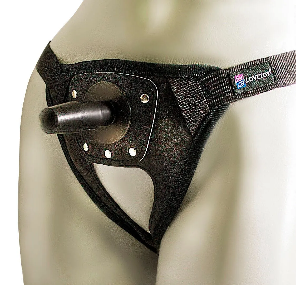Универсальные трусы для страпона от бренда Lovetoy 23 подходят для мужчин и женщин. Они сделаны из искусственной кожи черного цвета и мягкой подкладки с внутренней стороны. Мягкий материал и полужесткая упорная платформа обеспечат максимальный комфорт во время любовной игры. Трусики регулируются и подходят на любую фигуру с талией до 200 см. Трусики имеют регулировку в 4 точках, а насадка фиксируется на них при помощи пластмассовой "елочки". Вы можете присоединить к ним практически любой понравившийся Вам фаллоимитатор или насадку со стандартным отверстием. Смена игрушек позволит Вам поэкспериментировать со своими ощущениями и каждый раз получать новое удовольствие.