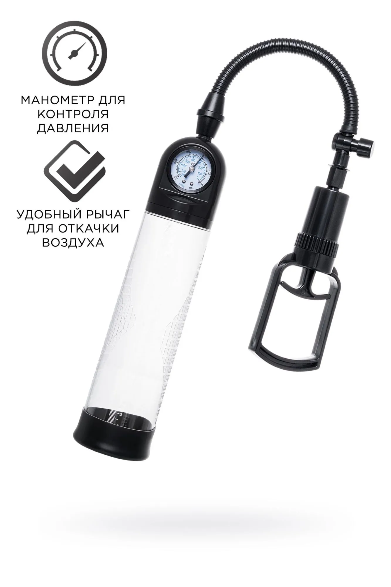 Гарант сексуального могущества для мужчины не только крепкая и надежная эрекция, но и внушительный размер орудия. Для тех, кто стремится достичь впечатляющих результатов в области увеличения размеров пениса, рекомендуется механическая помпа Helmer от Sexus® Men. С помпой Helmer серии Sexus® Men Training легко управлять своими тренировками по пенбилдингу, усиливать эрекцию и получать новые ощущения от полового акта. Для тренировки, а также чтобы подготовить себя к длительному и яркому сексу, вставьте свой пенис в колбу и откачайте воздух с помощью рычага. Благодаря отрицательному давлению увеличивается приток крови к половому члену, за уровнем давления удобно следить с помощью встроенного манометра. Прозрачный ABS-пластик позволяет наблюдать как пенис набирает силу и увеличивается в размере. А с помощью измерительной шкалы можно отслеживать результаты прямо в процессе. Для достижения ощутимых результатов рекомендуются систематические занятия по программе эффективного тренинга, которая входит в комплект. Регулярное использование вакуумной помпы Helmer от Sexus® Men позволяет: последовательно увеличить длину и диаметр полового члена, делая его более внушительным сделать эрекцию более стабильной, крепкой и продолжительной повысить сексуальную выносливость и половое влечение поднять уверенность в своих возможностях и совершать новые сексуальные подвиги понизить вероятность образований аномальных фиброзных тканей Помпа Helmer комплектуется поршневым рычагом для разрежения воздуха, механическим манометром, клапаном для быстрого сброса давления и программой для эффективных тренировок. Гофрированный шланг, силиконовая насадка, качественные материалы – все вместе это делает использование помпы Helmer не только безопасным, но и комфортным!