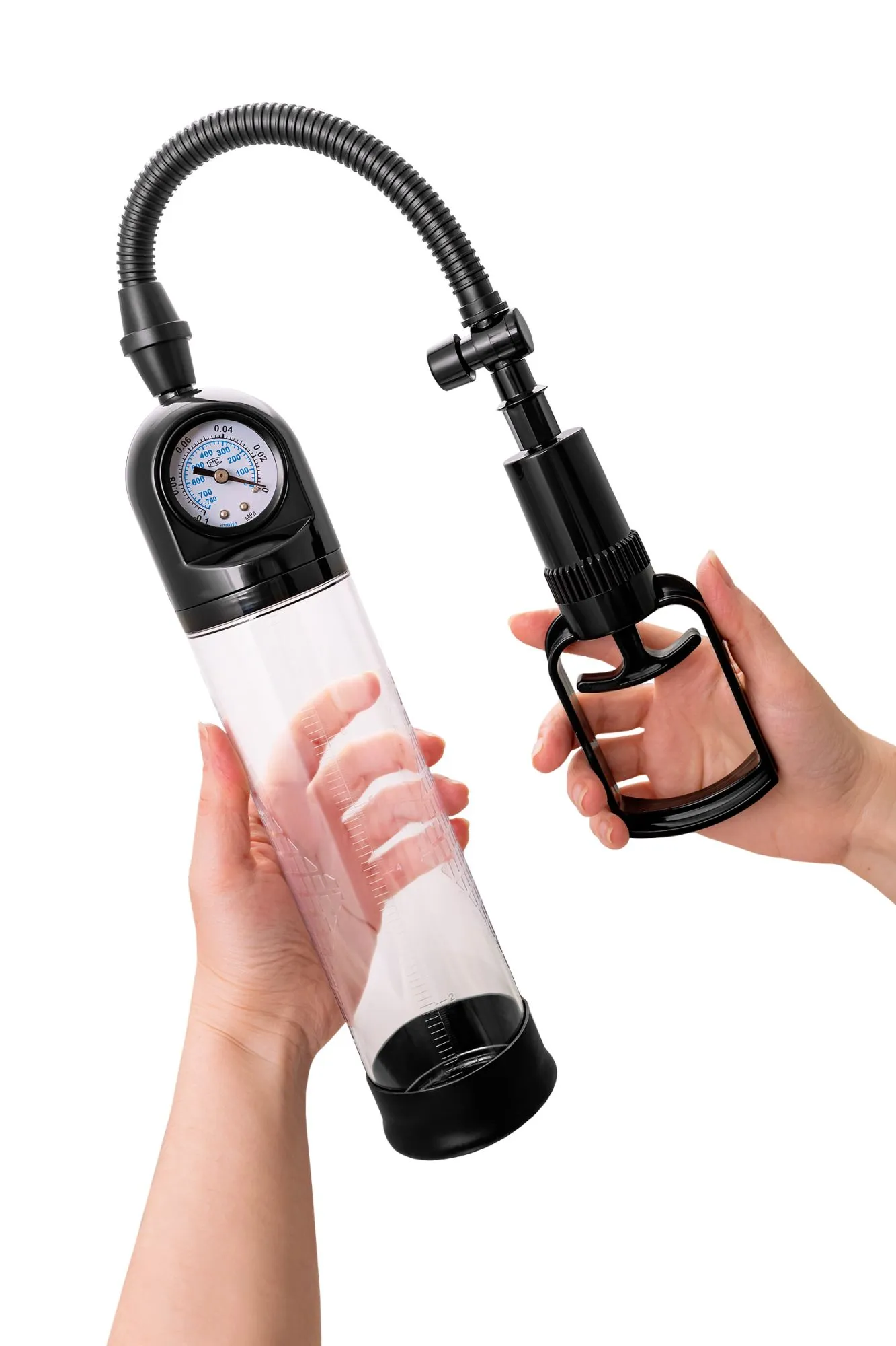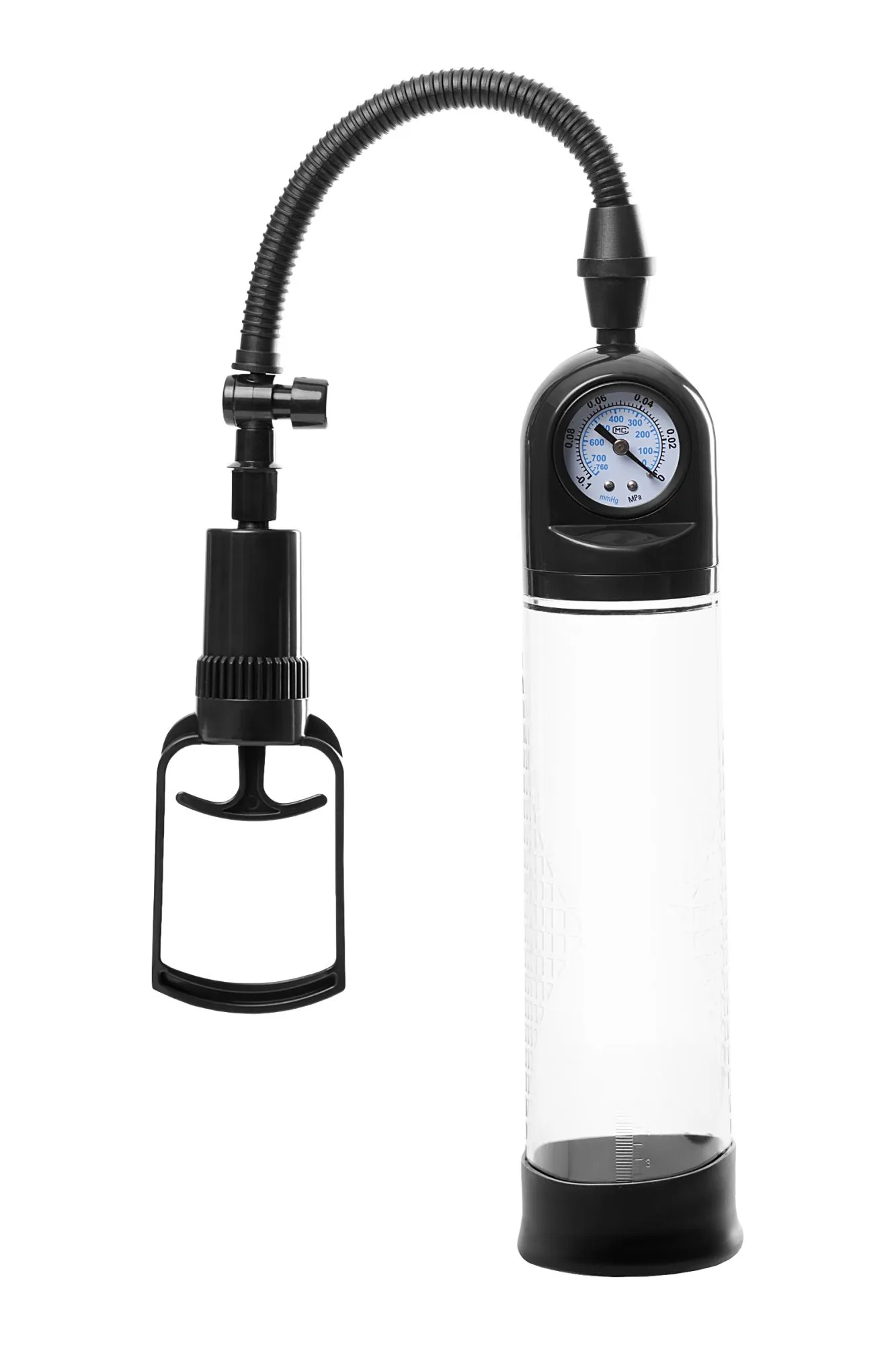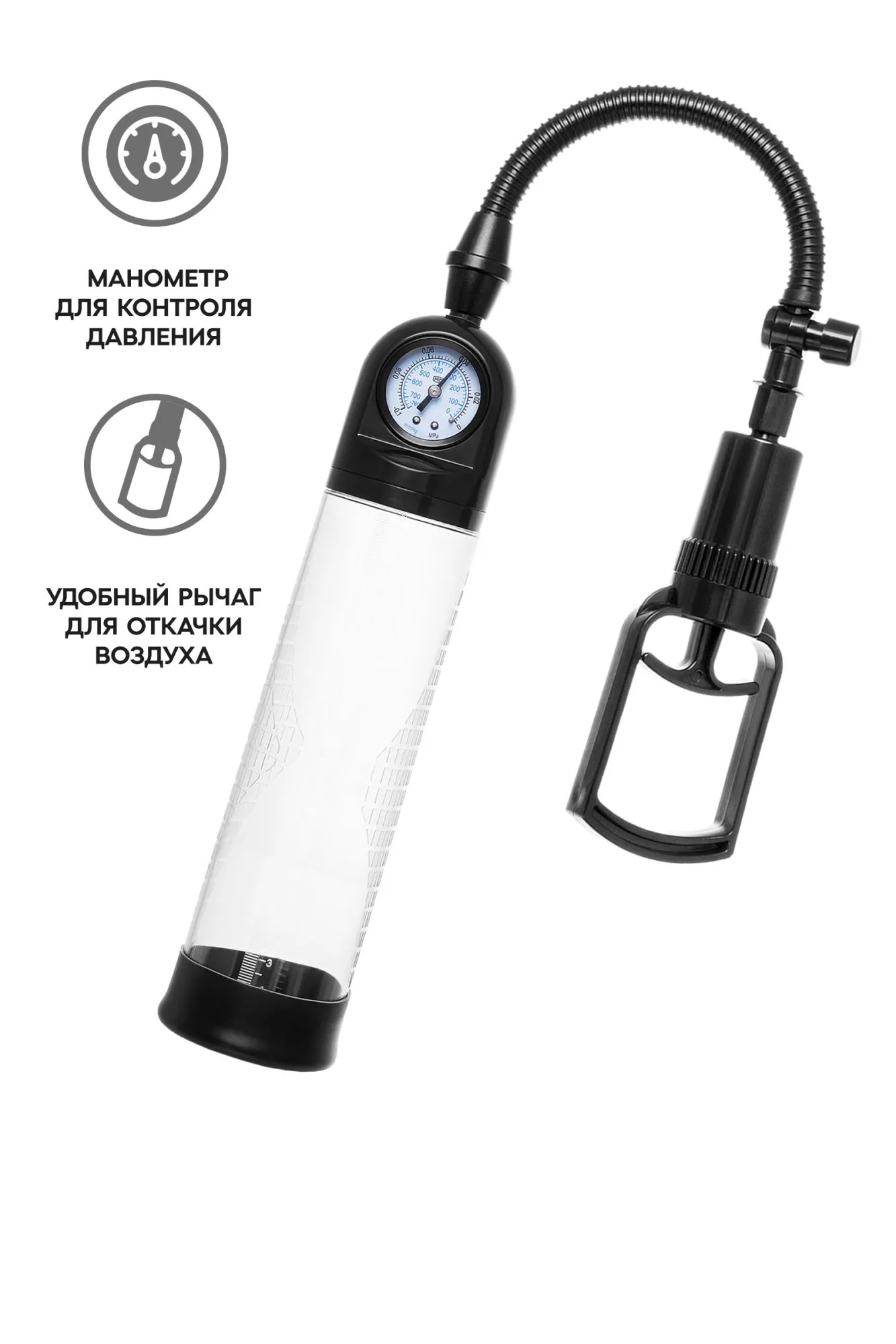 Удобная и простая в применении вакуумная помпа поможет простыми усилиями придать половому органу внушительный размер за счет растяжения мышечной ткани. Мягкое колечко у основания очень деликатно обволакивает член, прерывая доступ к кислороду и создавая эффект вакуума, воздух откачивается с помощью удобного поршня. Колба помпы выполнена из прочного и надежного ABS-пластика, понятный мономентр отображает степень давления в колбе, а размерная линейка на поверхности позволяет отметить разницу до и после массажа. Регулярное массажное помпирование прочищает сосуды, улучшая эрекцию.