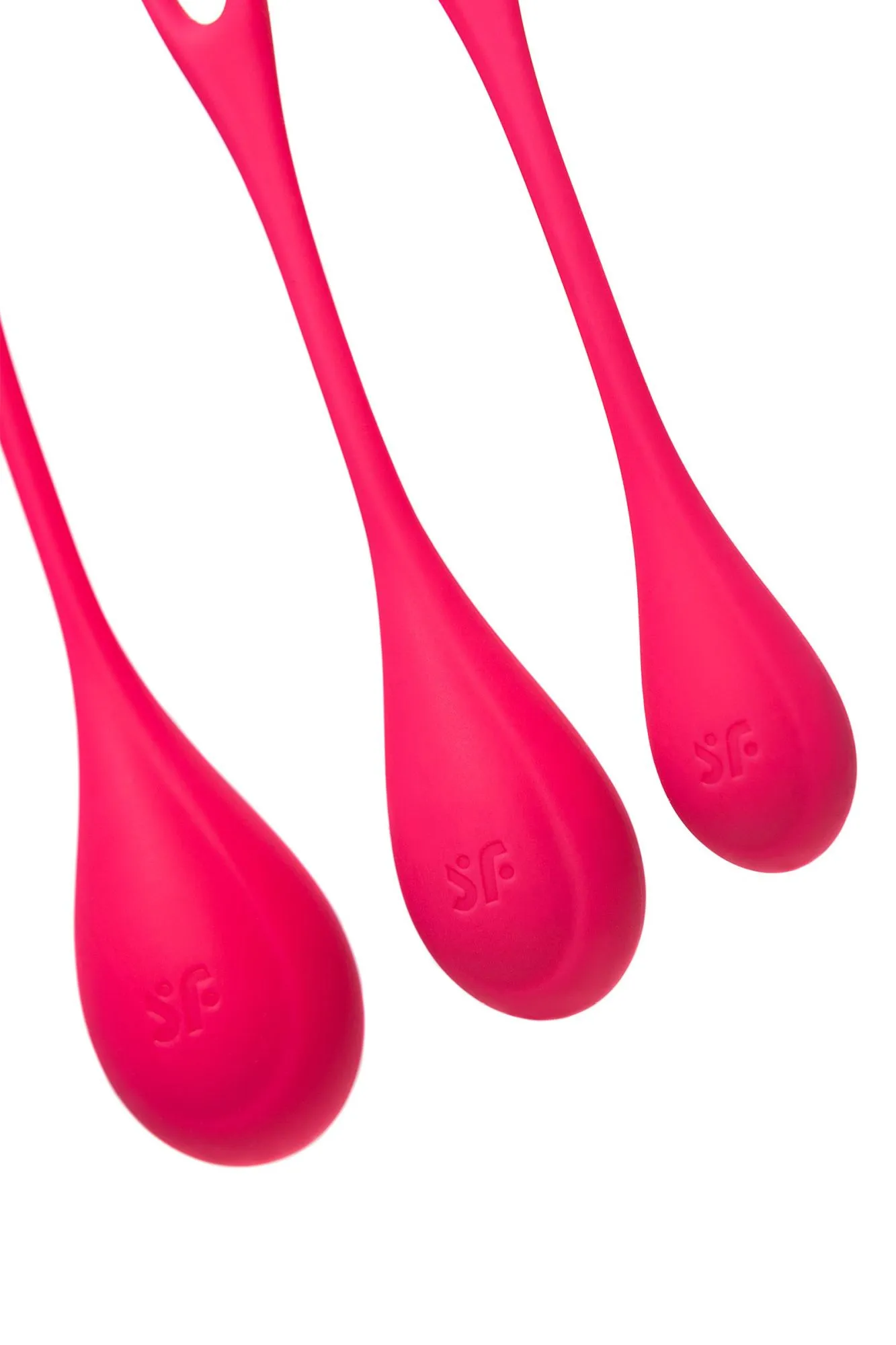 Satisfyer помогает заботиться об интимном здоровье женщин, и для этого был создан набор вагинальных тренажеров Yoni Power 1. Вагинальные шарики Yoni Power 1 разного размера помогают тренировать и укреплять мышцы тазового дна. Подобные тренировки помогают сделать интимную жизнь ярче, оргазмы интенсивнее, а кроме того, способствуют восстановлению мускулатуры после родов и операций. Вагинальные шарики Yoni Power 1 сделаны из медицинского силикона. Имеют цельное покрытие без швов и стыков, а значит использование безопасно и гигиенично. В тренировочном наборе 3 одиночных шарика с петельками для разных уровней тренировок: диаметр 2 см, вес 21 гр, длина 12 см диаметр 2,5 см, вес 45 гр, длина 13 см диаметр 3 см, вес 75 гр, длина 14 см Уделите всего 15 минут в день тренировкам с Yoni Power 1, и уже очень скоро удовольствие от секса качественно изменится как для женщины, так и для мужчины. Начинайте с самого тяжелого и большого шарика, чтобы затем перейти к самому маленькому и легкому. Используйте лубрикант на водной основе для комфортного введения и извлечения. Очищать шарики желательно до и после использования. Можно промыть в теплой воде с мылом или воспользоваться специализированным чистящим средством. Перед хранением их необходимо хорошо просушить. Желательно хранить отдельно от других силиконовых изделий. Надежный – гарантия 15 лет Безопасный и гигиеничный медицинский силикон Разный вес и диаметр – для эффективных тренировок Красивый и удобный – стильный дизайн, эргономичная форма и удобная петелька Водонепроницаемость IPX7 – новые возможности в удовольствии в душе и ванной Страна бренда – Германия