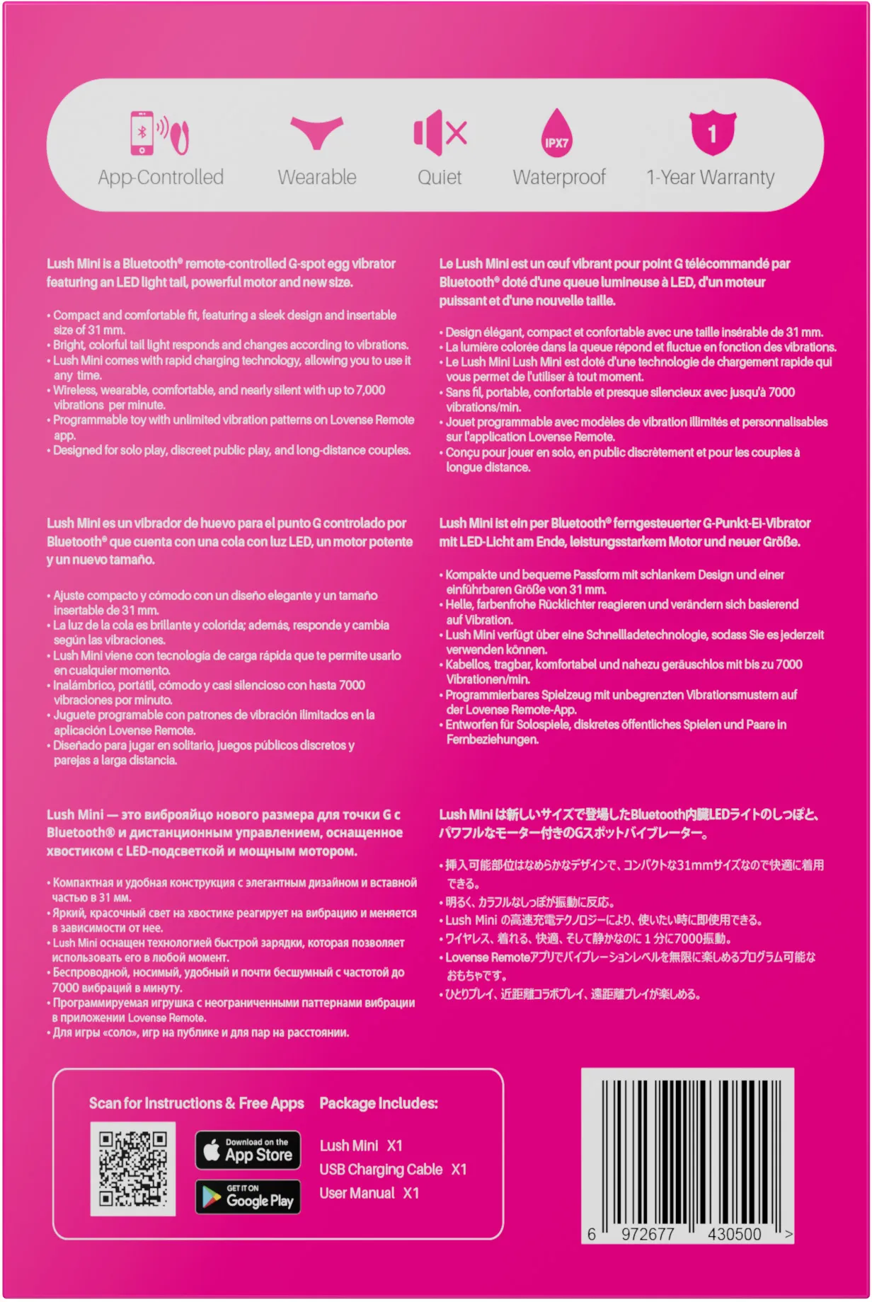 Мощная вибрация: Lush Mini оснащен мощным мотором - до 7000 вибраций/мин для стимуляции точки G, который обеспечивает интенсивную и разнообразную вибрацию для максимального удовольствия.