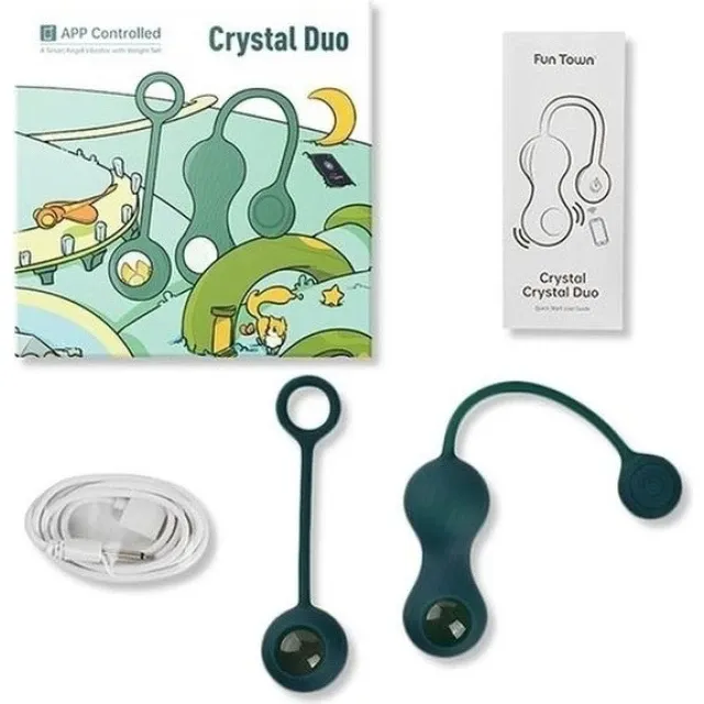 Magic Motion Fun Town Crystal - это двойные вагинальные шарики из нежного силикона, с отягощением в виде стеклянного шара и 10 режимами вибраций, которые помогает усилить мышцы тазового дна и делают тренировку максимально приятной.