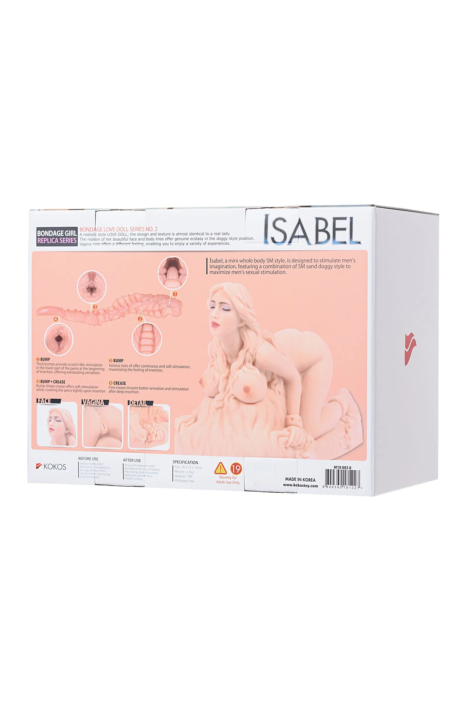 Скованные руки и ноги, манящая беззащитная поза и готовность исполнять любые желания — мини-кукла KOKOS Isabel настоящая находка для тех, кто хочет попрактиковать Бондаж и Дисциплину. Хорошенькое личико игрушки, ее возбуждающие формы и нежнейшая киберкожа помогут вам полностью погрузиться в выбранный сценарий и насладиться властью над невольницей. Вас впечатлит анатомическая точность исполнения ее вагинального канала. Вы ощутите рельеф из множества выпуклостей, мембран и складок. И будете в восторге от того, как активно узкий канал стимулирует ствол и головку члена. Только, пожалуйста, не думайте, что на этом приятные эмоции заканчиваются. При динамичных фрикциях вас ждет еще один сюрприз — закрытая форма девайса дарит легкий эффект посасывания. Быстрая разрядка без лишних слов, долгие игры в наказание, dirty talk или осознанная мастурбация — с KOKOS Isabel ваша прихоть будет исполнена. • Безопасный для здоровья материал Закрытый тоннель для создания эффекта оральных ласк Совместим со смазками на водной основе