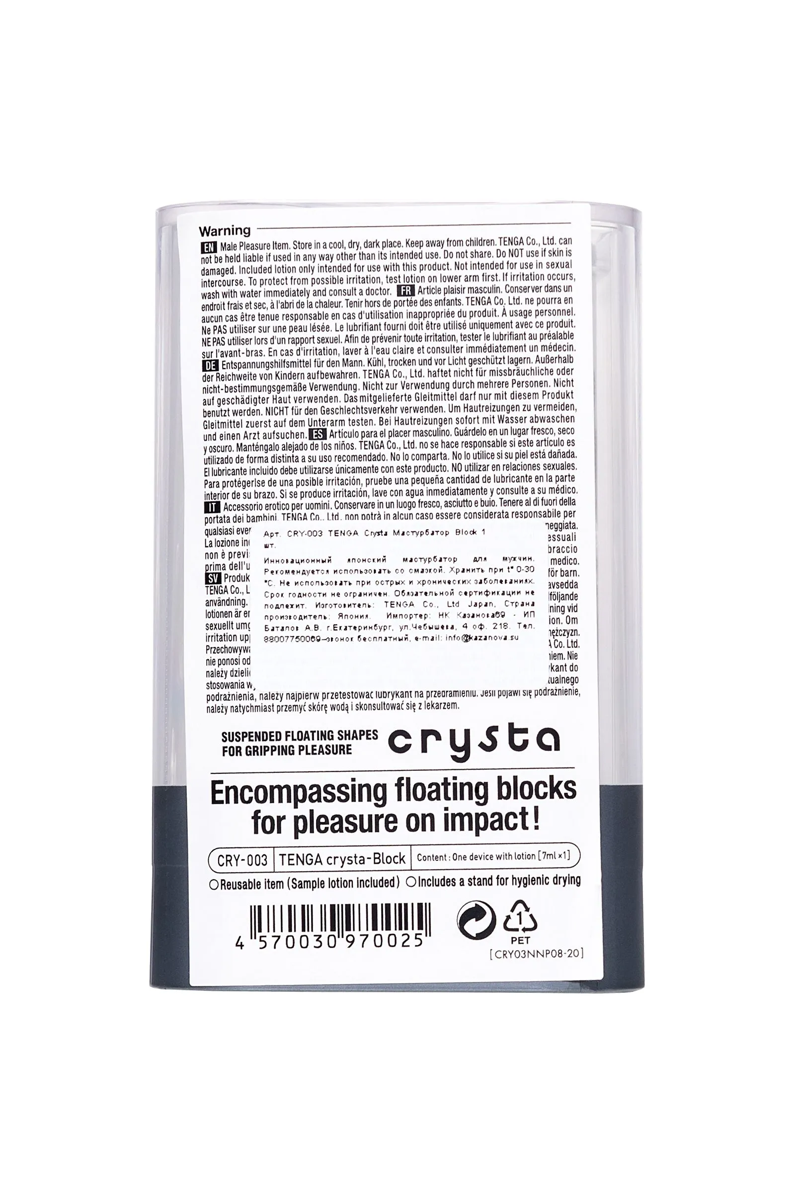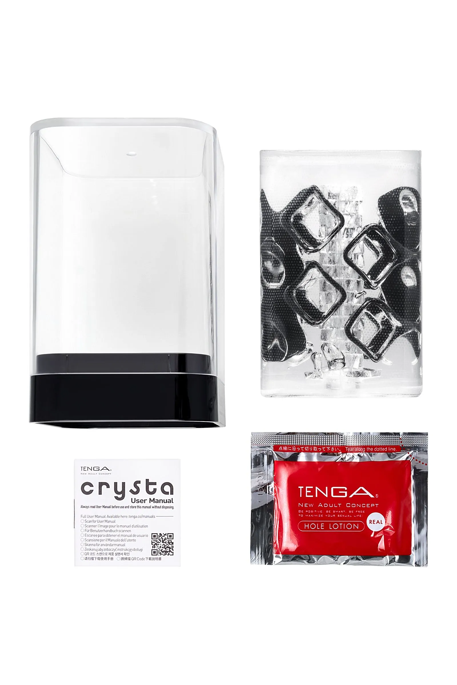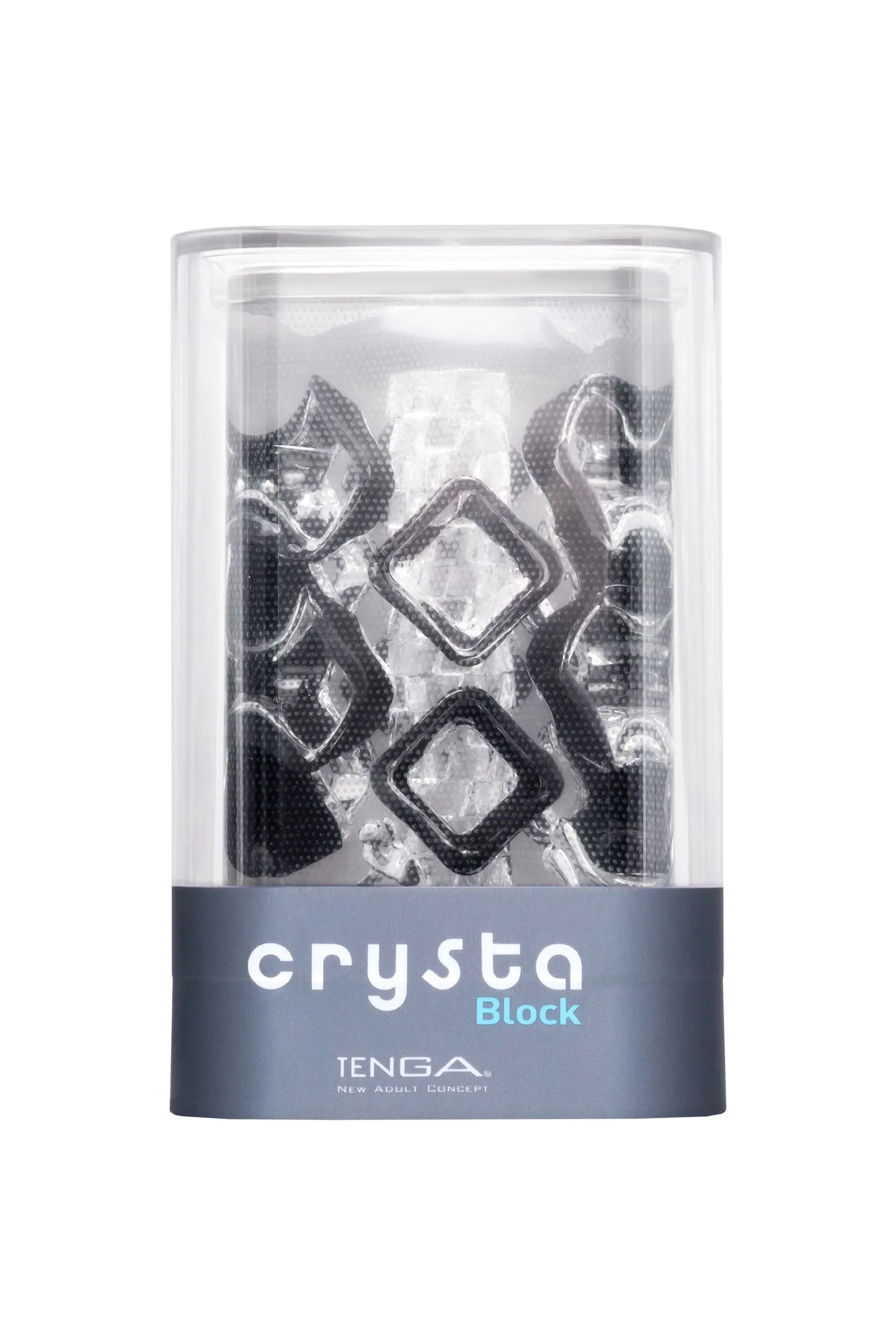Функциональная форма и футуристичный дизайн делают коллекцию Tenga Crysta настоящим произведением искусства среди мужчских мастурбаторов. В динейке представлены три мастурбатора с различными рельефами. Текастура Block состоит из множества кубов разного диаметра, расположенных вдоль узкого входного канала в хаотичном порядке.