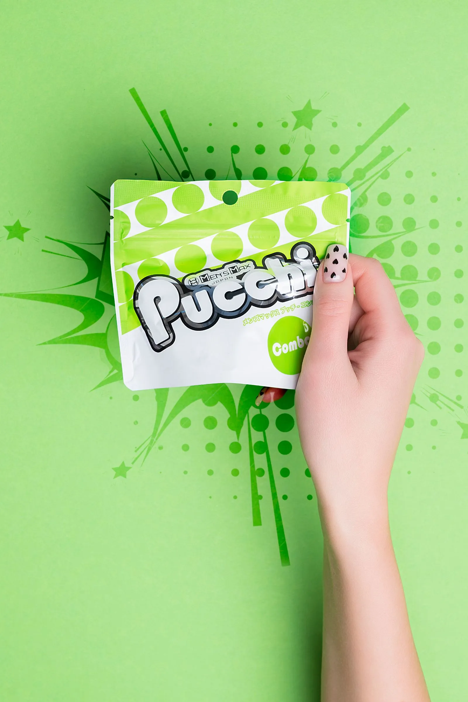Обновленный карманный мастурбатор MensMax Pucchi Combo имеет увеличенный размер, улучшенную эластичность, более четкий рельеф, и выделяет еще больше смазки – берите его с собой куда угодно. Все что вам нужно – это мастурбатор и немного воды. Самоувлажняющийся мастурбатор невероятно удобен в командировках, путешествиях и в повседневной жизни. Благодаря запатентованной японской технологии, инновационный материал +Wetch при взаимодействии с водой выделяет густой гель, усиливающий скольжение. Даже во время длительного массажа пениса гель не скатывается и не высыхает. Достаточно добавить немного воды, чтобы испытать полный спектр эмоций от интимного удовольствия. Многоразовая непрозрачная упаковка с замочком-клапаном служит мешочком для хранения. Упругий, но эластичный материал подходит для мужчин с любыми размерами пениса. Материал игрушки тактильно приятный и быстро принимает температуру тела. Чтобы усилить ощущения, добавьте теплую воду и наслаждайтесь температурными играми. MensMax Pucchi производят на новейшем оборудовании в Японии, что гарантирует качество и безопасность использования. Мастурбатор Pucchi Combo представляет собой мягкую трехъярусную елочку с одним отверстием. Внешняя сторона гладкая и нежная, а внутренний рельеф сделан из ярко выраженных ребер и конусов. Чередующиеся ряды выпуклостей особенно ярко ощущаются при стимуляции головки. Чем глубже проникновение, тем ощутимее стимуляция. Инструкция: Достаньте мастурбатор из упаковки и налейте в него немного воды (чайную ложку). Старайтесь не намочить внешнюю сторону игрушки, чтобы смазка не мешала вам в процессе. Распределите образовавшийся гель по внутренней поверхности девайса. Начните с массажа головки, так вы сможете получить максимальное наслаждение от рельефа и настроиться на нужный лад. Совершайте вращательные движения по часовой стрелке или против нее. Для предварительных ласк партнерши выверните мастурбатор наизнанку и наденьте на пальцы. После игр промойте Pucchi водой или средством для очистки игрушек. Когда израсходуете смазку мастурбатора, выбирайте лубриканты на водной основе.