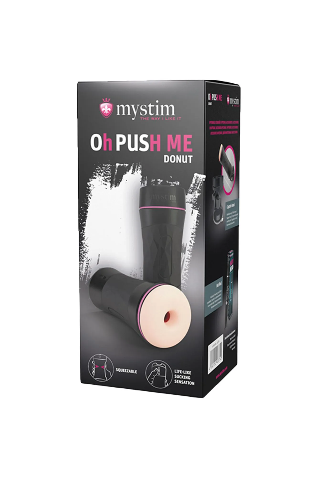 Вы испытаете идеальные сексуальные ощущения с Oh PUSH ME Donut. Реалистично сформированный туннель с формой в виде бублика позволяет вам испытать обтягивающий и сверхчувствительный материал, а также необычного вида всасывания. Нажмите на область сужения, чтобы сжать или ослабить стимуляцию. Регулируя воздушную заслонку, вы также можете регулировать, насколько сильно втягивается ваш пенис. С таким мастурбатором вам гарантирован феерический оргазм!