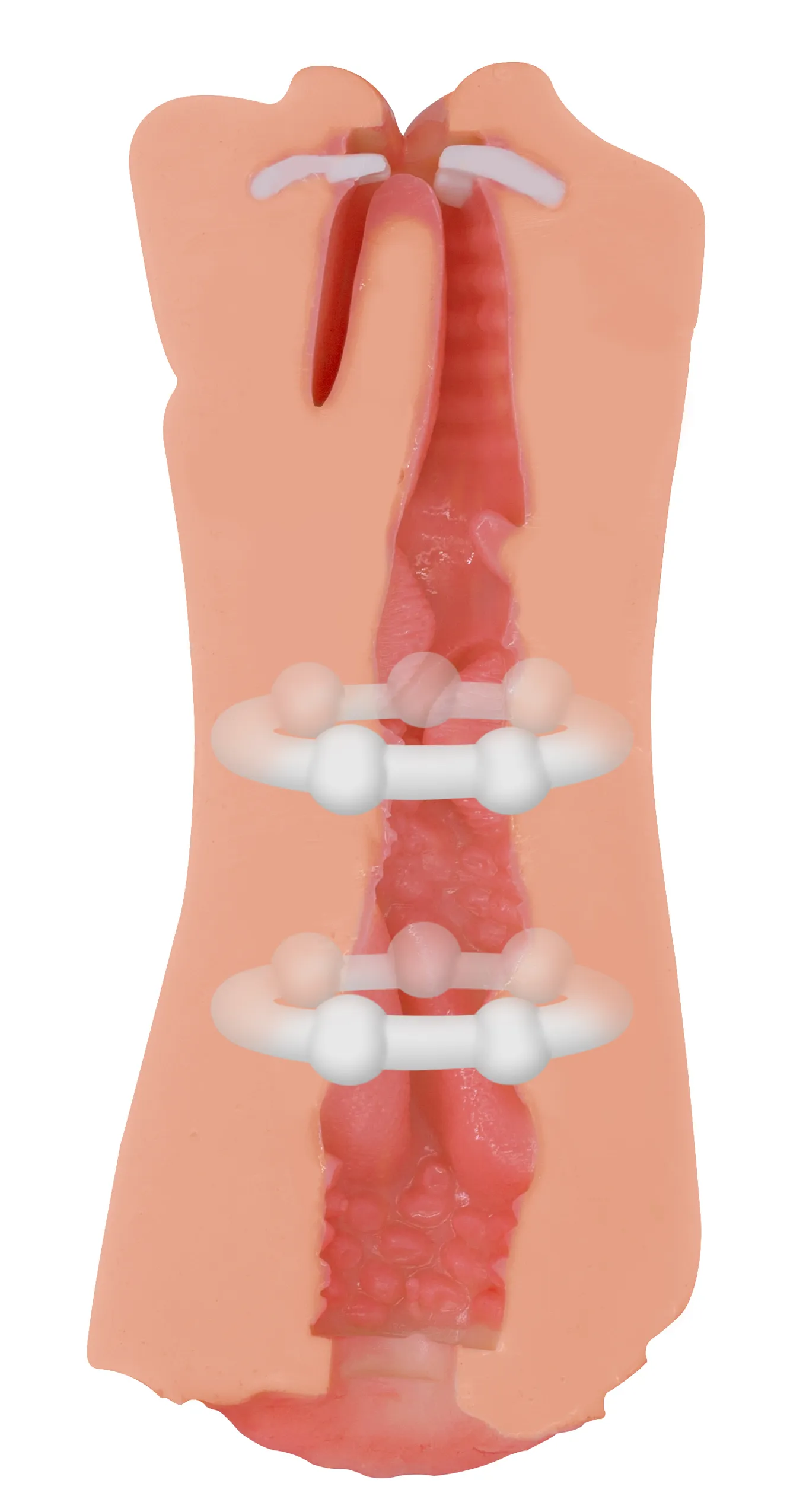 Двойной мастурбатор эластичной текстуры, способен возбудить и довести до оргазма любого мужчину. Перед использованием рекомендуется добавить лубрикант. Он выполнен в виде двух любовных отверстий: вагины с мурашками на коже и женского ротика (раскрашенного вручную) с белоснежными зубками, подвижным язычком и гландами. Рельефная внутренняя текстура которой напоминает анатомическое строение девушки, и для создания которой применяется двойная заливка материала. Инновационная технология "Узкий Вход" обеспечит максимально плотный обхват и создаст ощущение сжатия вагинальными мышцами. Мастурбатор выполнен из TPR, безопасен для кожи, не содержит фталатов. Подойдет для любого размера. Общая длина – 18 см, ширина – 6,8 см, высота — 7 см, диаметр отверстия – 1,5 и 3 см.