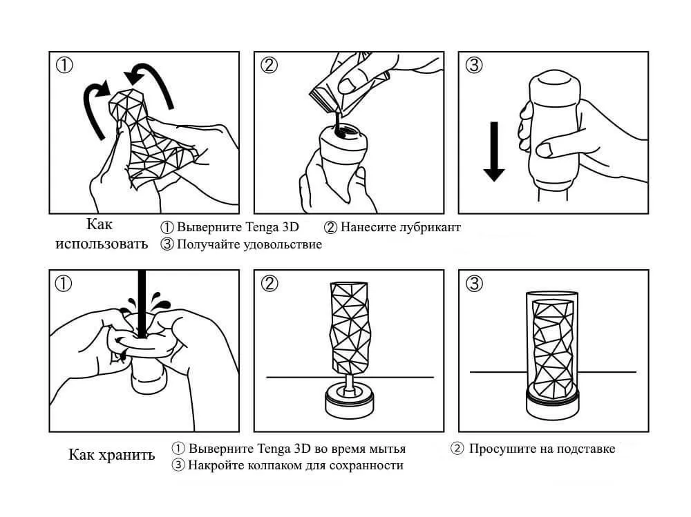 Мастурбатор не нуждается в сложном уходе и прост в использовании. Перед игрой достаньте его из колбы, выверните, смажьте лубрикантом и наслаждайтесь потоком приятных ощущений. После использования вновь выверните мастурбатор и промойте теплой водой. Не пользуйтесь мылом! Щелочь негативно сказывается на структуре материала. Сохнуть игрушка должна на подставке.