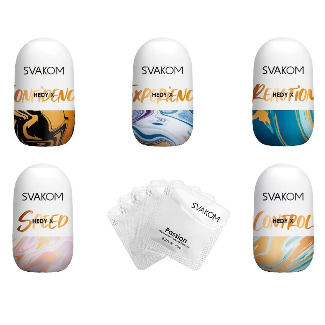 Серия Hedy X - это коллекция из 5 мастурбаторов с различной текстурой, каждый из которых тщательно разработан компанией Svacom для вашего максимального удовольствия. Разверните, добавьте смазку на водной основе и наслаждайтесь! Каждый из них можно использовать до 10 раз, двусторонняя фактура приносит двойное удовольствие – просто выверните наизнанку и попробуйте ещё разок! Мастурбаторы сделаны из ультрамягкого материала, он создаёт реалистичное ощущение контакта с вагиной, универсальный размер подходит всем, потому что растягивается ровно на столько сколько вам нужно. После использования можно легко очистить с помощью тёплой воды и мягкого мыла. Выбирайте каждый раз фактуру по настроению, и получайте свою порцию удовольствия независимо ни от кого!