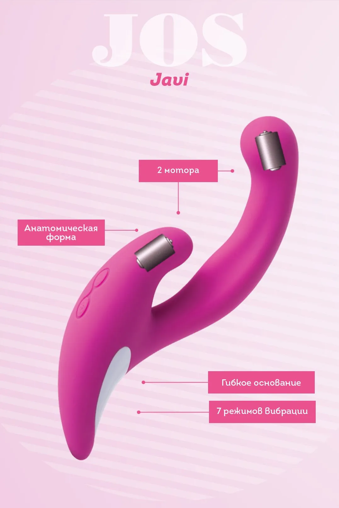 Вибратор имеет точно выверенный эргономичный дизайн и гибкое основание. Он подстроится под индивидуальные особенности каждой женщины и обязательно доберется до всех горячих точек. Изогнутая головка с мощным мотором создана для точки G. Изготовлен из высококачественного бархатистого силикона. Емкий аккумулятор (до 2 часов непрерывной работы!) заряжается от USB. Бесшумная вибрация Эргономичный дизайн Гибкое основание 2 мощных мотора 7 режимов вибрации