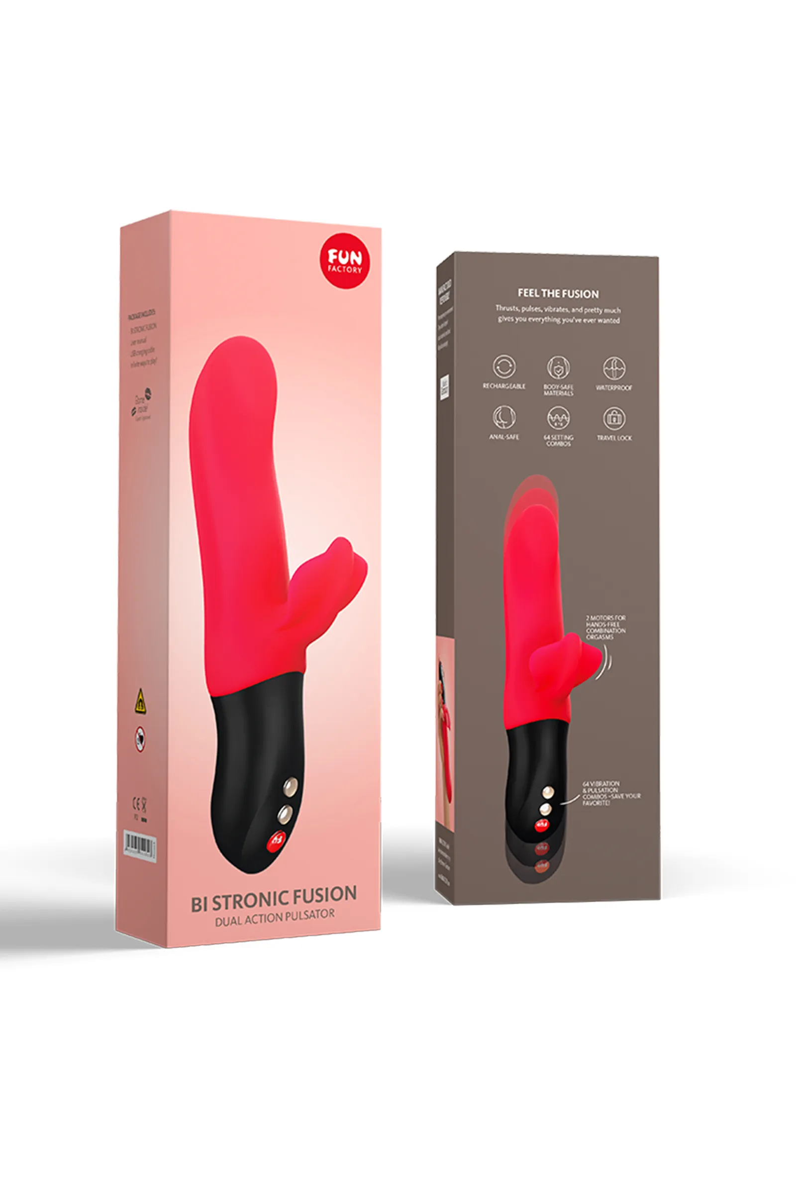Пульсатор Fun Factory Bi Stronic Fusion — идеальный любовник: • Его многофункциональность поражает: пульсатор совмещает в себе мощный клиторальный вибратор, массажёр точки G или простаты, а также стимулятор влагалища, половых губ или ануса. • Его инновационный принцип работы позволяет насладиться и вибрацией, и пульсацией, которые могут работать вместе или независимо друг от друга. • Его интуитивно понятная панель управления молниеносно отзывается на любое желание, в том числе на мгновенную остановку. • Его расширенный функционал — светящийся индикатор заряда аккумулятора и блокировка замка — помогает держать удовольствие под контролем. • Его водонепроницаемая поверхность никогда не откажет в совместном принятии расслабляющей ванны. • Его зарядка от USB-провода быстро возвращает разрядившуюся игрушку в строй. С пульсатором Fun Factory Bi Stronic Fusion жаркие оргазмы станут постоянными спутниками интимных сессий!