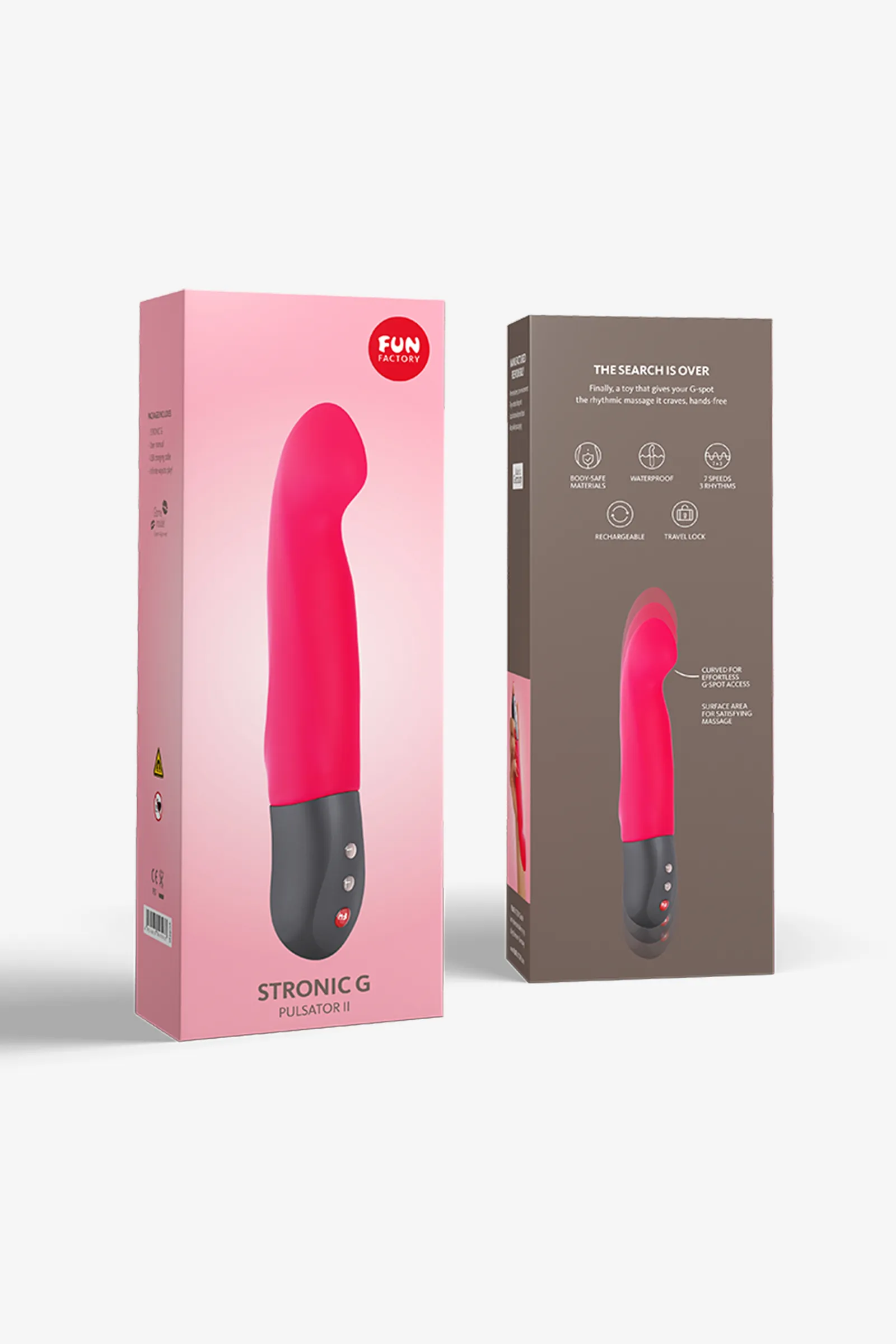 Пульсатор Stronic G специально для достижения точки G. можно использовать в паре или соло уменьшенная модель для удобства использования функция блокировки функция памяти, запоминает ваш любимый режим индикатор заряда гипоаллергенный 45 минут работы на самом мощном режиме время подзарядки 6-8 часов 20,8 см Ø 3,4 - 4,2 см, 314 грамм